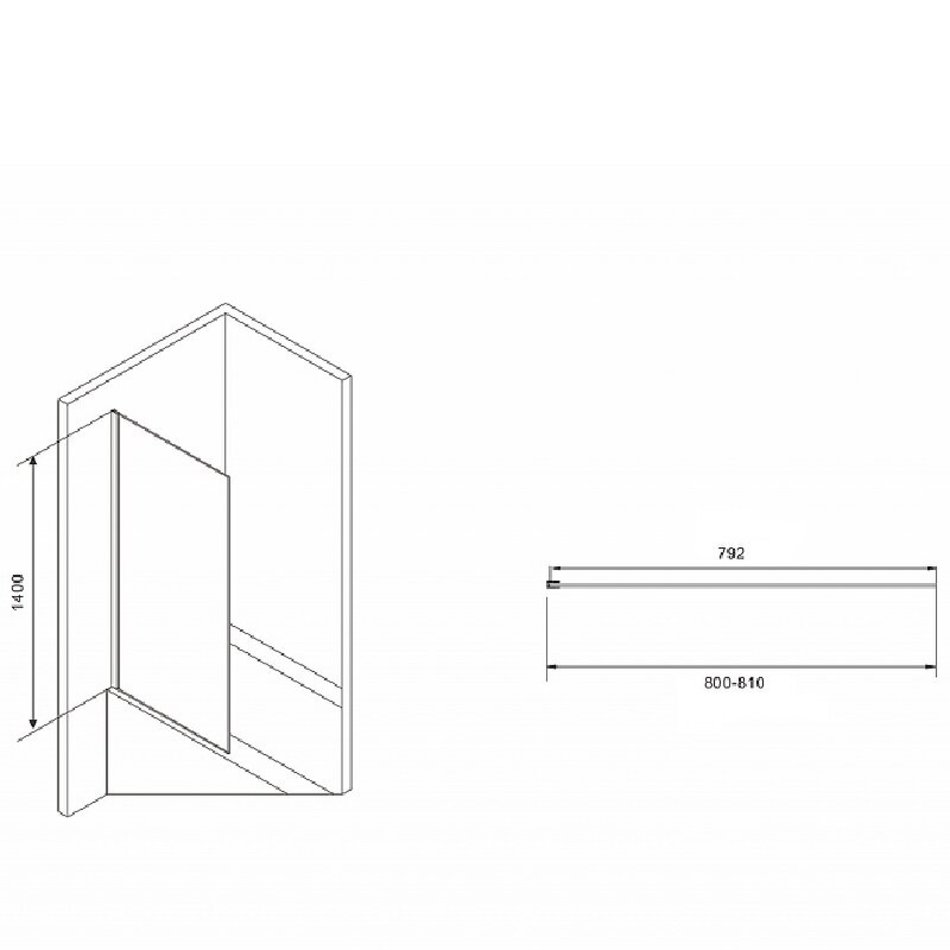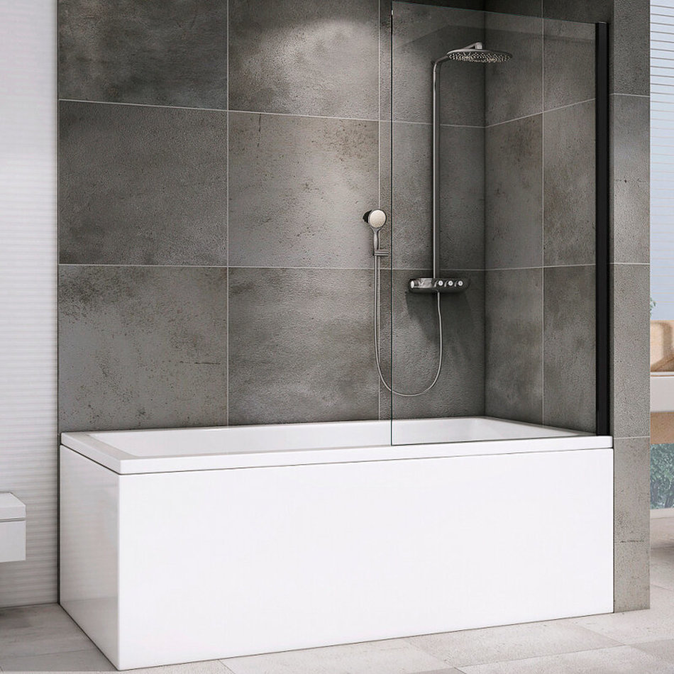 Шторка на ванну Abber Immer Offen, 80 х 140 см, стекло прозрачное, профиль черный, AG71080B