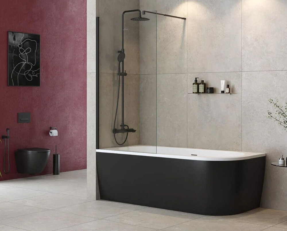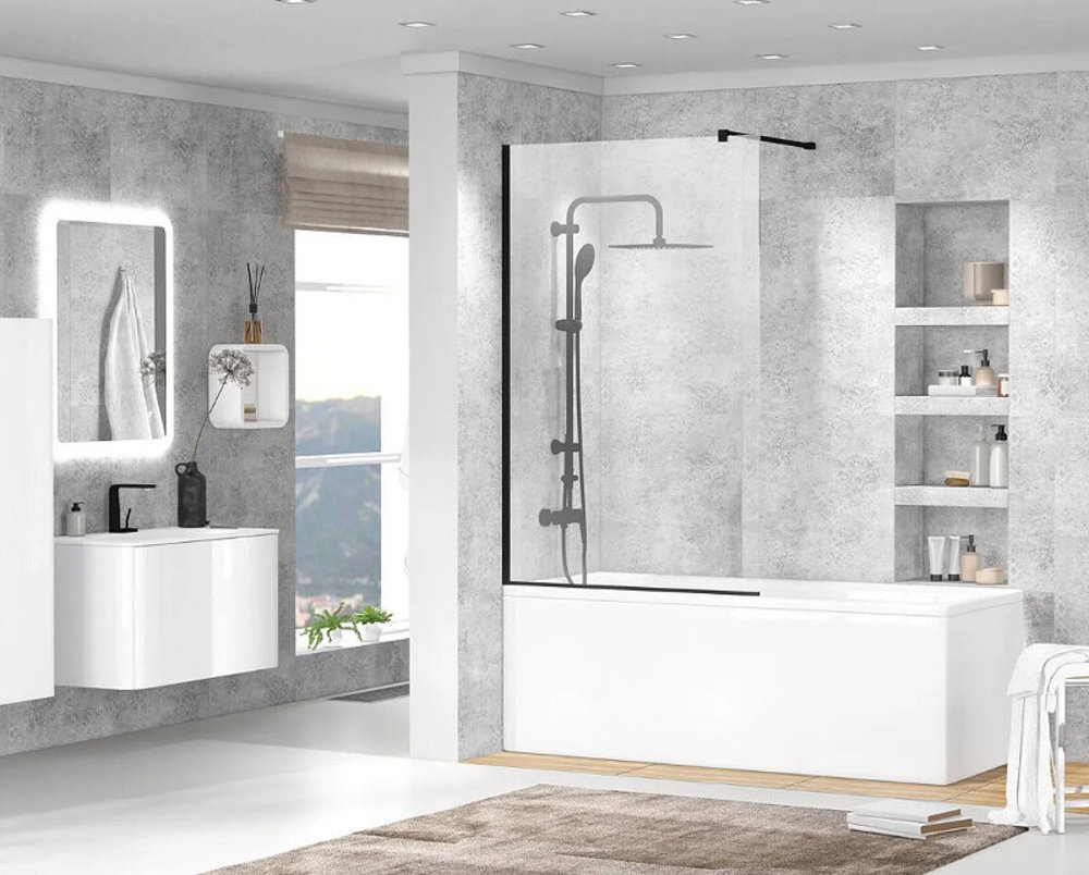 Шторка на ванну Cezares Liberta-V-1-80/155-C-NERO, 80 см, стекло прозрачное, профиль черный матовый