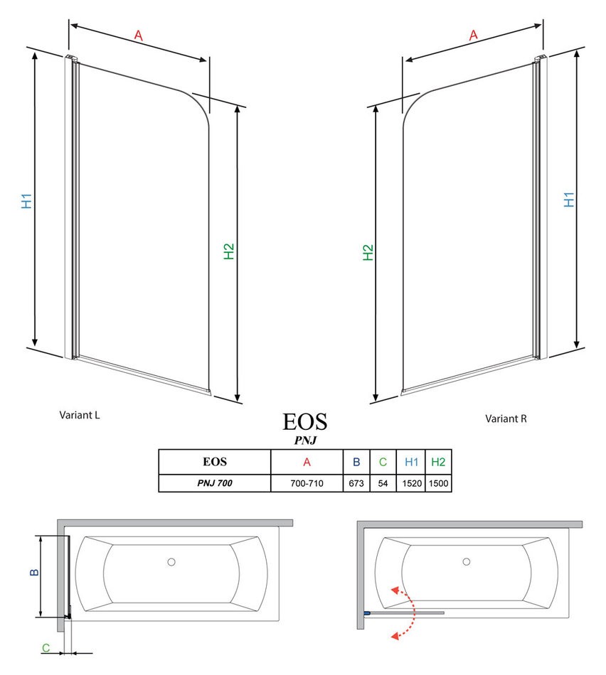 Шторка на ванну Radaway EOS PNJ 70 R 1205101-101R