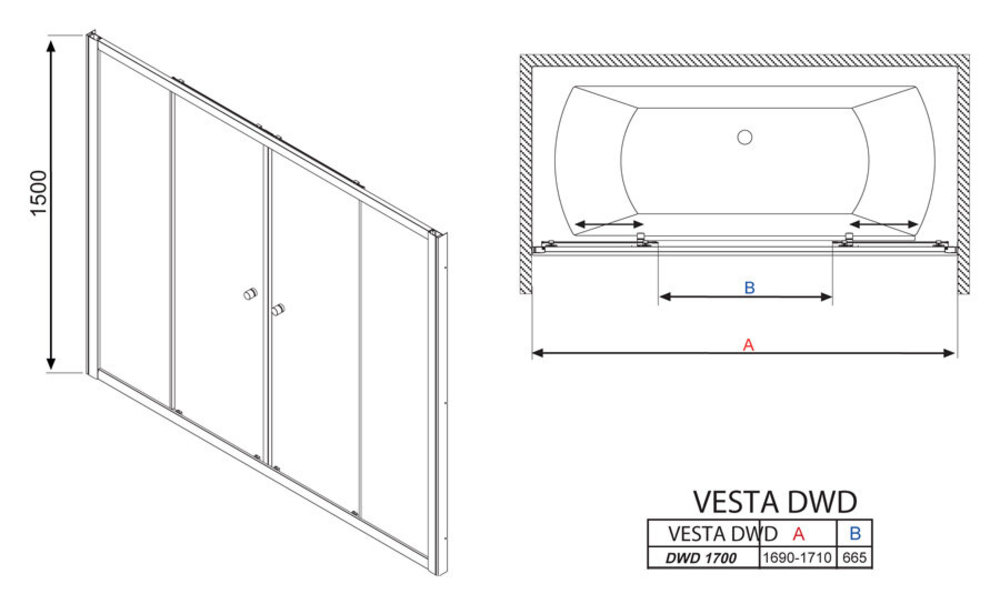 Шторка на ванну Radaway Vesta DWD 170 прозрачное стекло (203170-01)