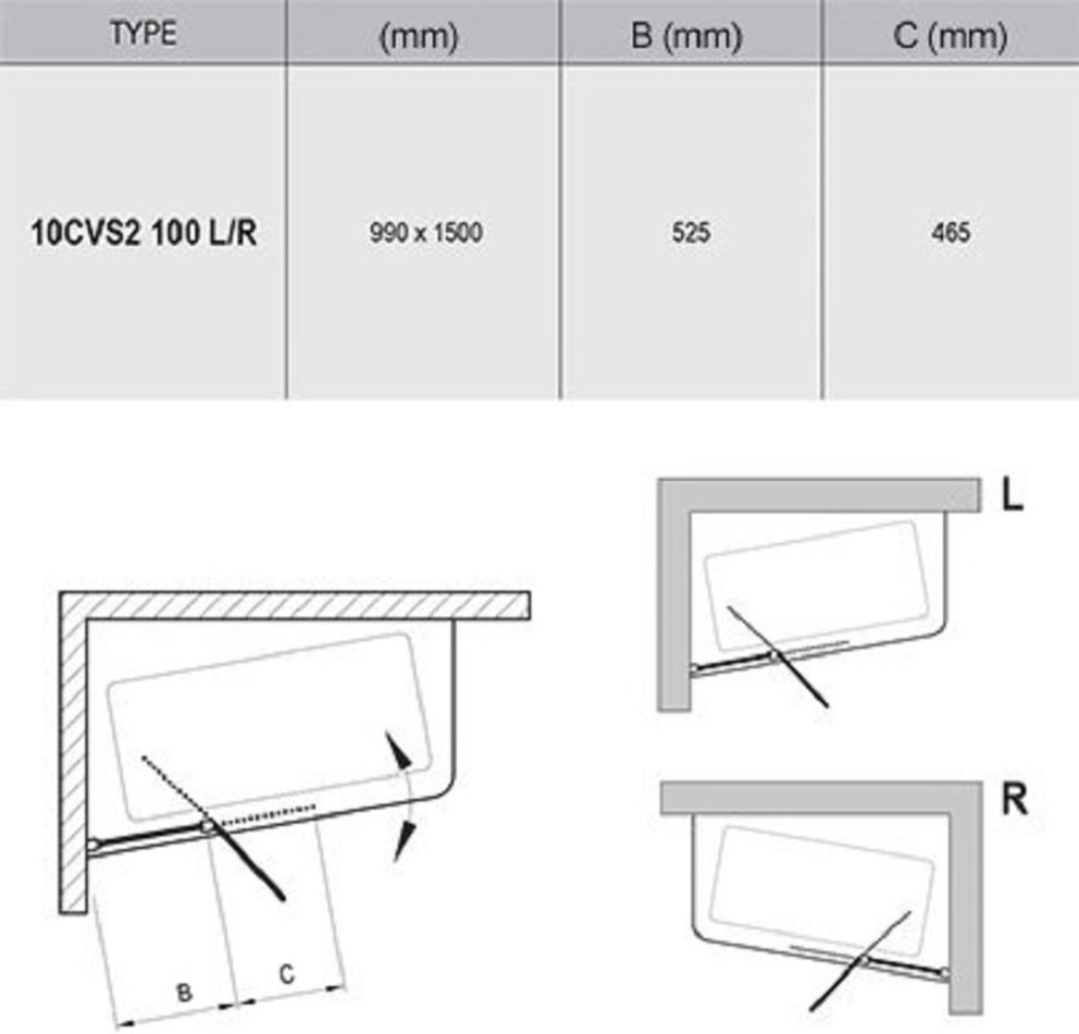 Шторка на ванну Ravak 10CVS2-100 левая/правая, профиль белый, витраж транспарент, 7QLA0103Z1/7QRA0103Z1
