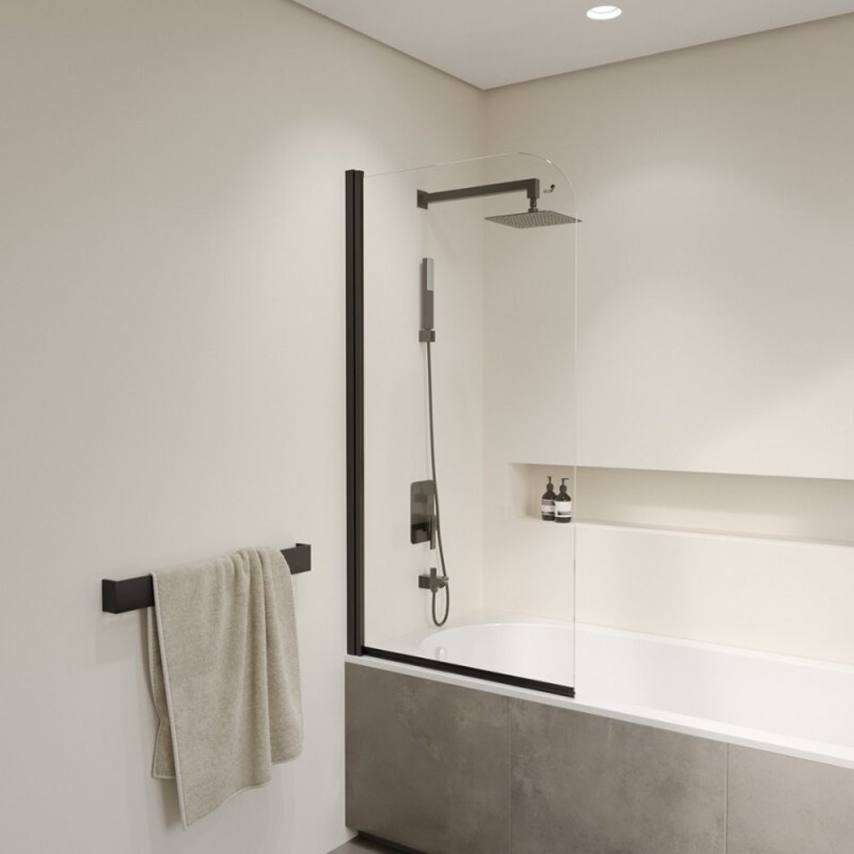 Шторка на ванну маятниковая. Толщина закаленного, безопасного стекла 6 мм. Функция подъема стекла с доводчиком.