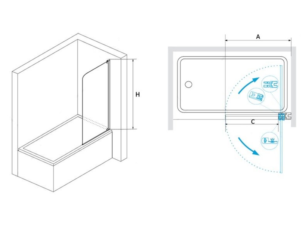 Шторка на ванну RGW SC-01, 03110108-11, 80 x 150 см стекло прозрачное, хром