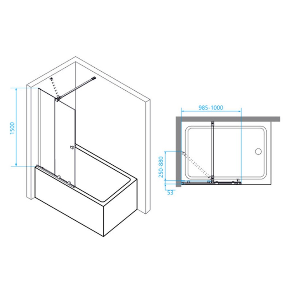 Шторка на ванну RGW Screens SC-46, 100 см стекло прозрачное, профиль хром, 06114610-11