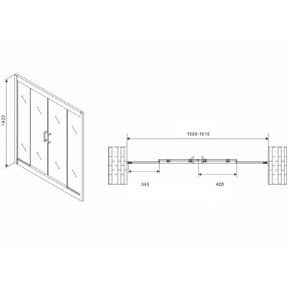 Шторка на ванну Schwarzer Diamant, 160 х 140 см, стекло прозрачное, профиль хром, AG57160