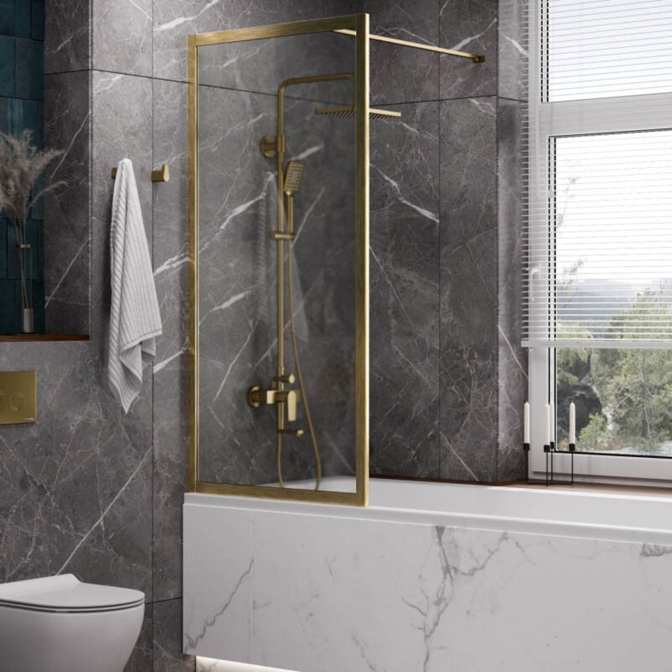 Стеклянная шторка на ванну WasserKraft Abens 20W, 80 х 160 см, стекло прозрачное, профиль золото матовое, 20W01-80 BG Fixed WasserSchutz