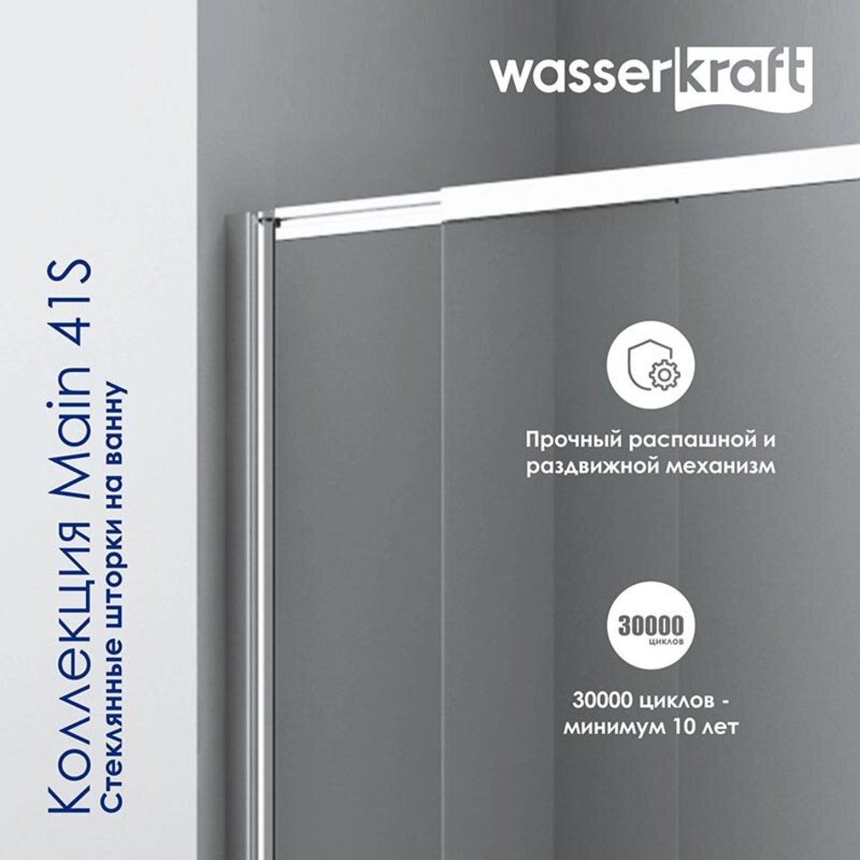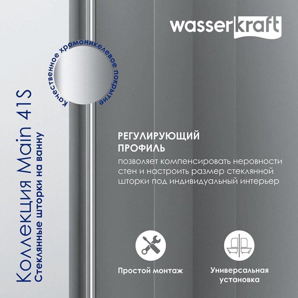 Стеклянная шторка WasserKraft Main 41S, для душа, двустворчатая, стекло прозрачное, профиль серебристый, 41S02-80 Fixed