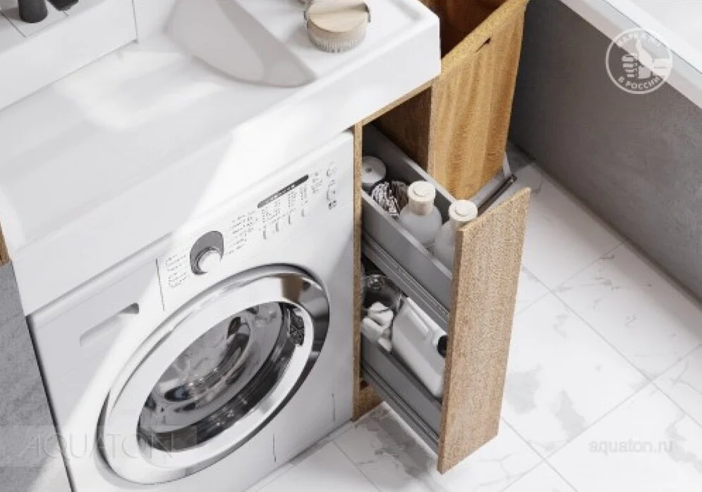 Тумба под раковину Акватон Лондри 20 см под стиральную машину, дуб сантана, 1A2671K1LH0C0