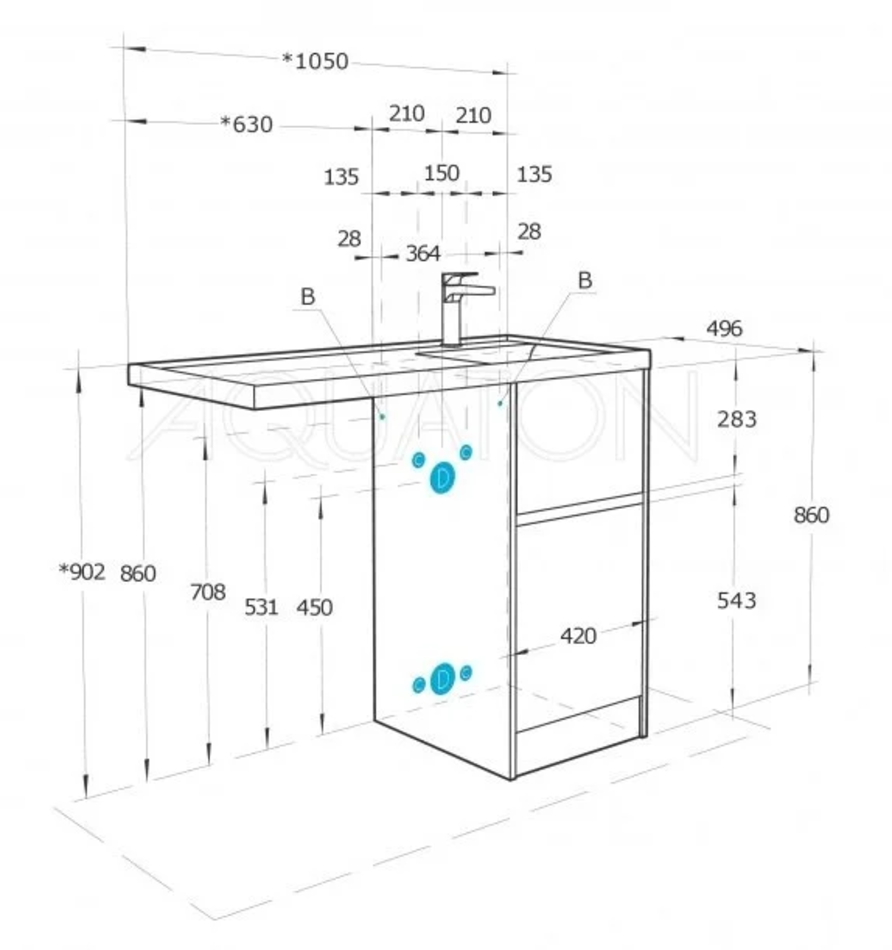 Тумба под раковину Акватон Лондри 40 см под стиральную машину, дуб кантри, 1A2670K1LHDY0