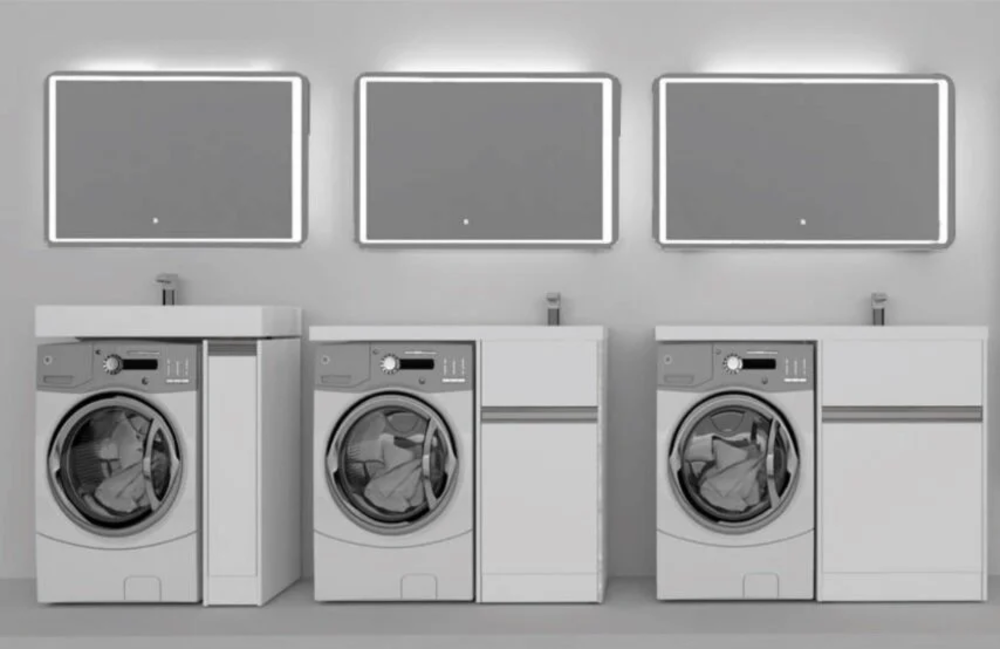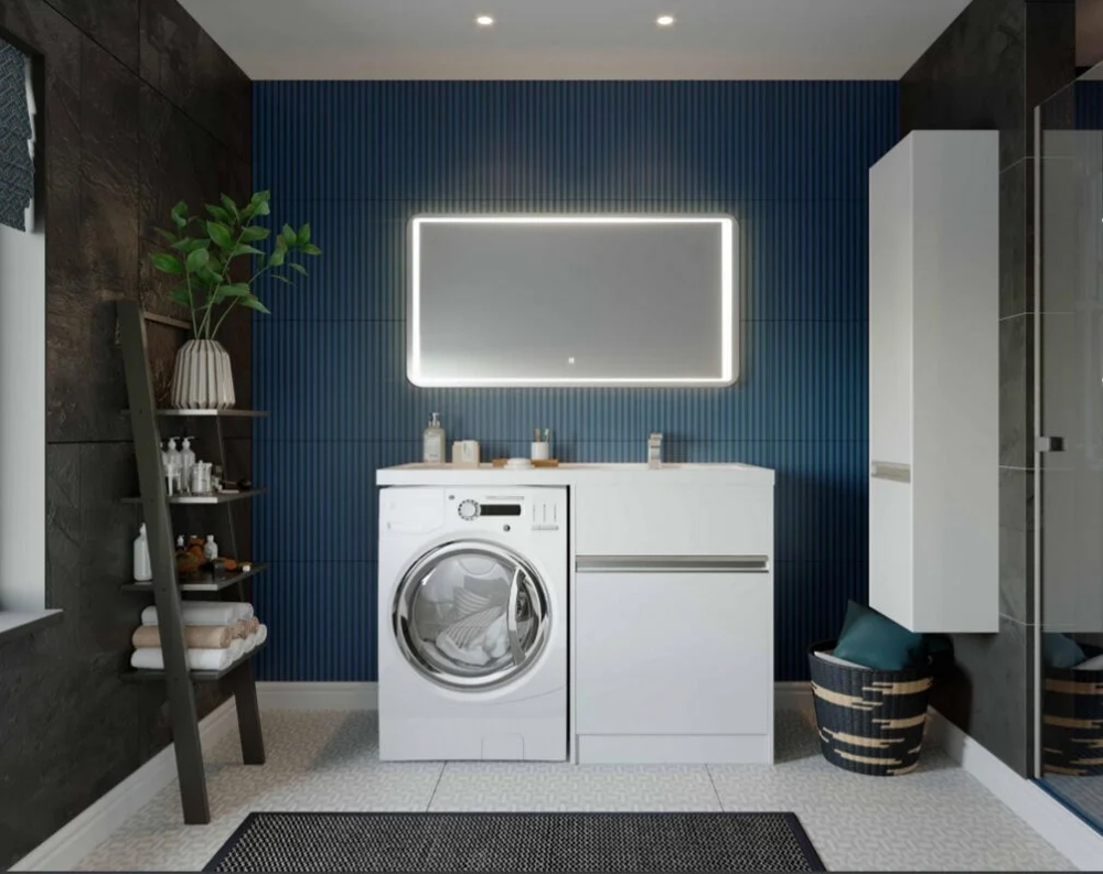 Тумба с раковиной Акватон Лондри 120 см, под стиральную машину, напольная, белая, правая, 1A2359K0LH010