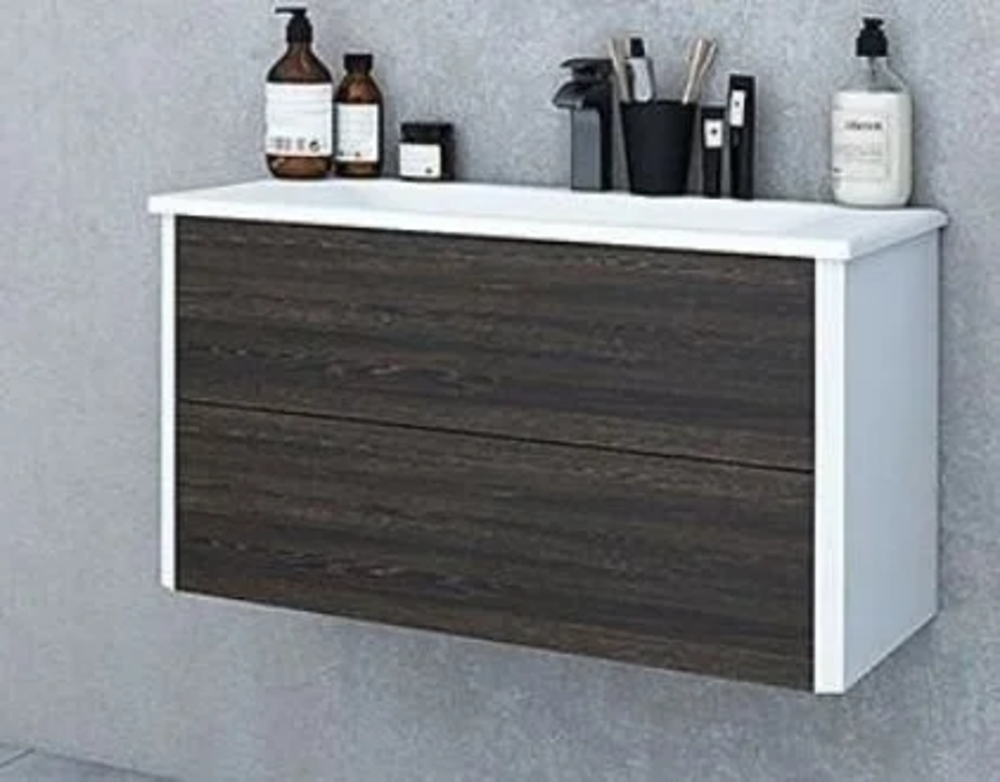 Тумба под раковину Монтаж: подвесной Размер: 99.6x44.3x50 см 2 ящика Материал: влагостойкий ДСП Форма: прямоугольная Вес: 39 кг Цвет корпуса: белый Цвет фасада: дуб феррара