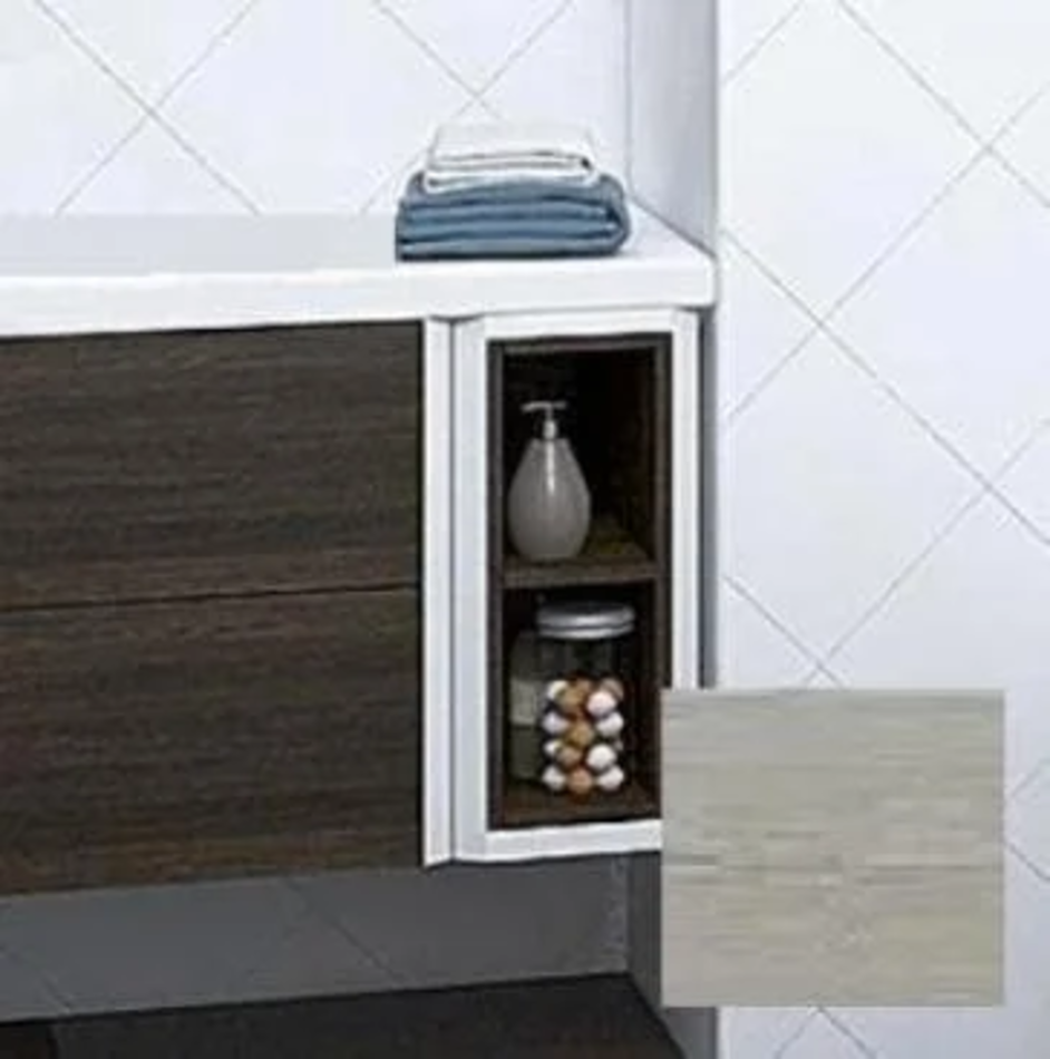 Шкаф открытый Монтаж: подвесной Размер: 20x44.3x50 см Материал: влагостойкий ДСП Форма: прямоугольная Вес: 16.3 кг Цвет корпуса: белый Цвет фасада: дуб латте