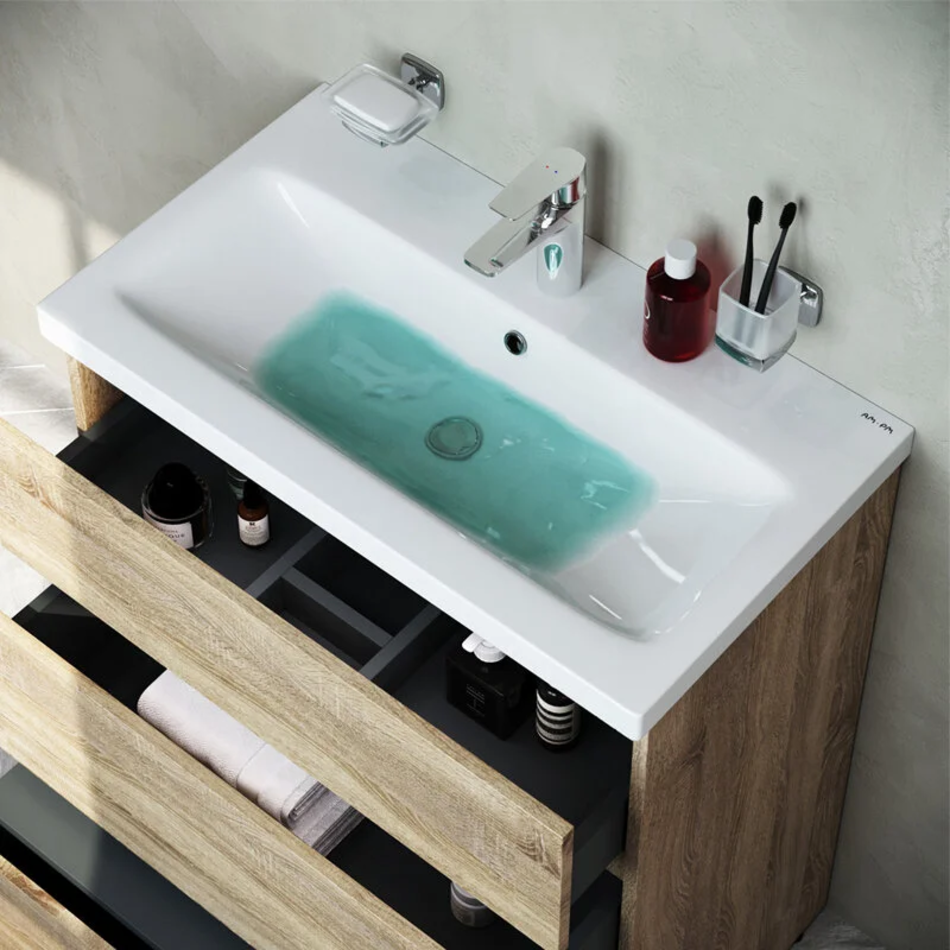 Тумба Am.Pm Gem S M91FSX0752OF под раковину напольная 75 см, со встроенной ступенькой для детей, светлый дуб