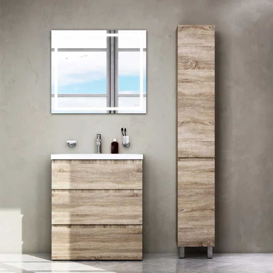 Повышенная влагостойкость мебели: окрашенные в 7 слоев поверхности мебели в цвете белый глянец , влагостойкая плита мебели в цвете светлый дуб.