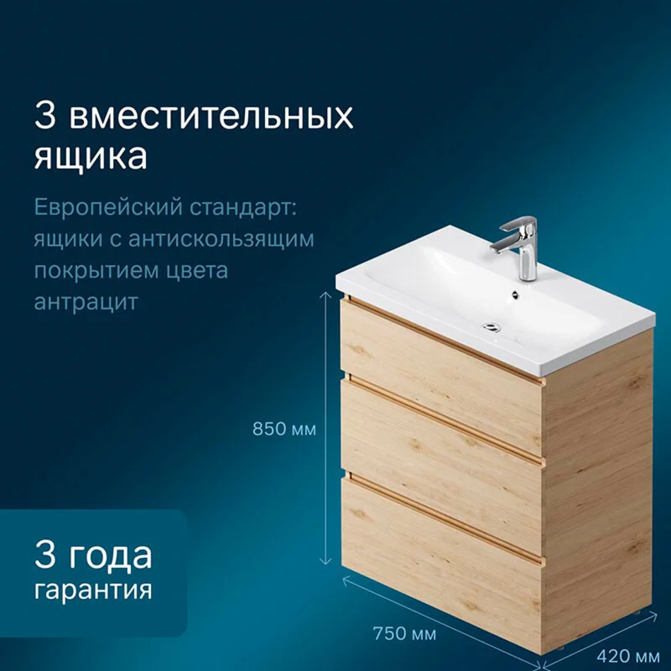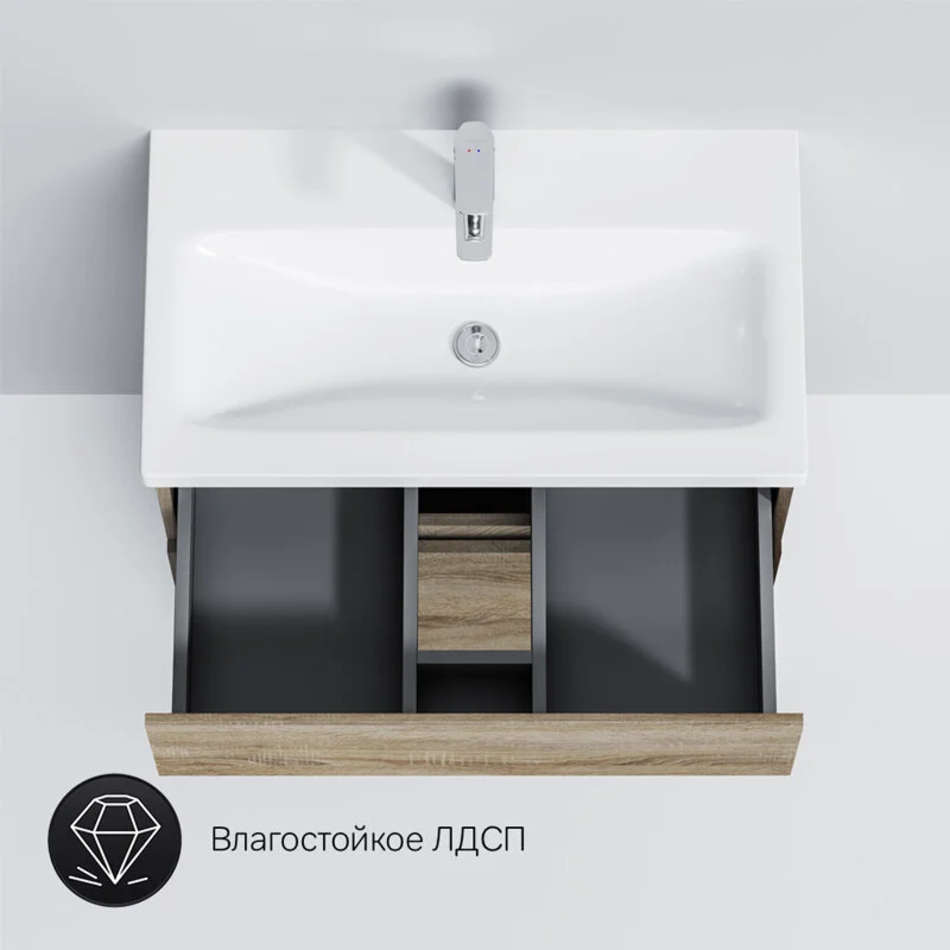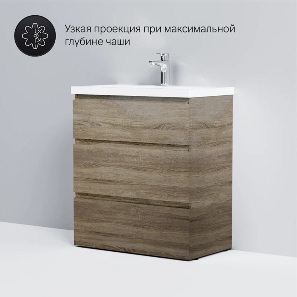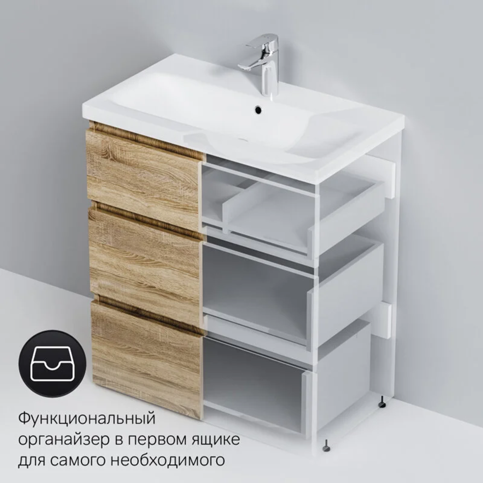 Уникальный нижний ящик базы может быть использован как: выдвижная подставка для детей, для удобного мытья рук (выдерживает нагрузку до 60 кг); дополнительная ниша для хранения (экономия пространства ванной комнаты).