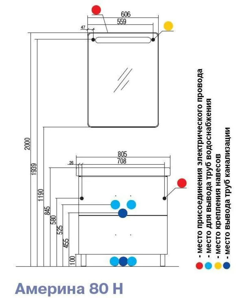 Тумба под раковину Акватон Америна 80 Н, 1A169401AM950, черная