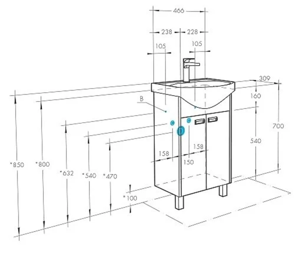 - Расположение смесителя :посередине