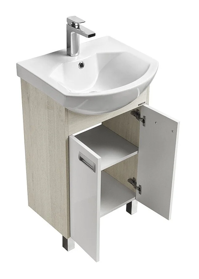 Тумба под раковину Акватон Бекка PRO 50 см напольная, белый, дуб сомерсет, 1A210801BAC20