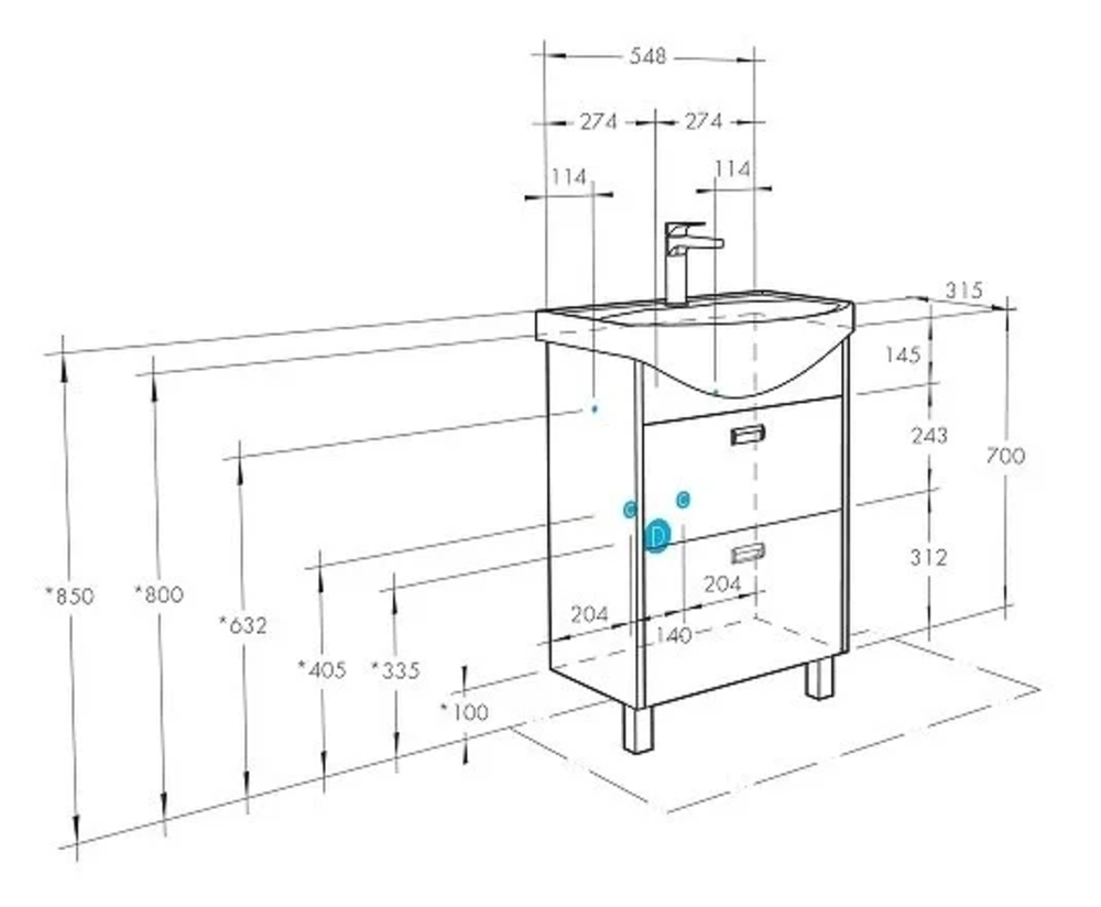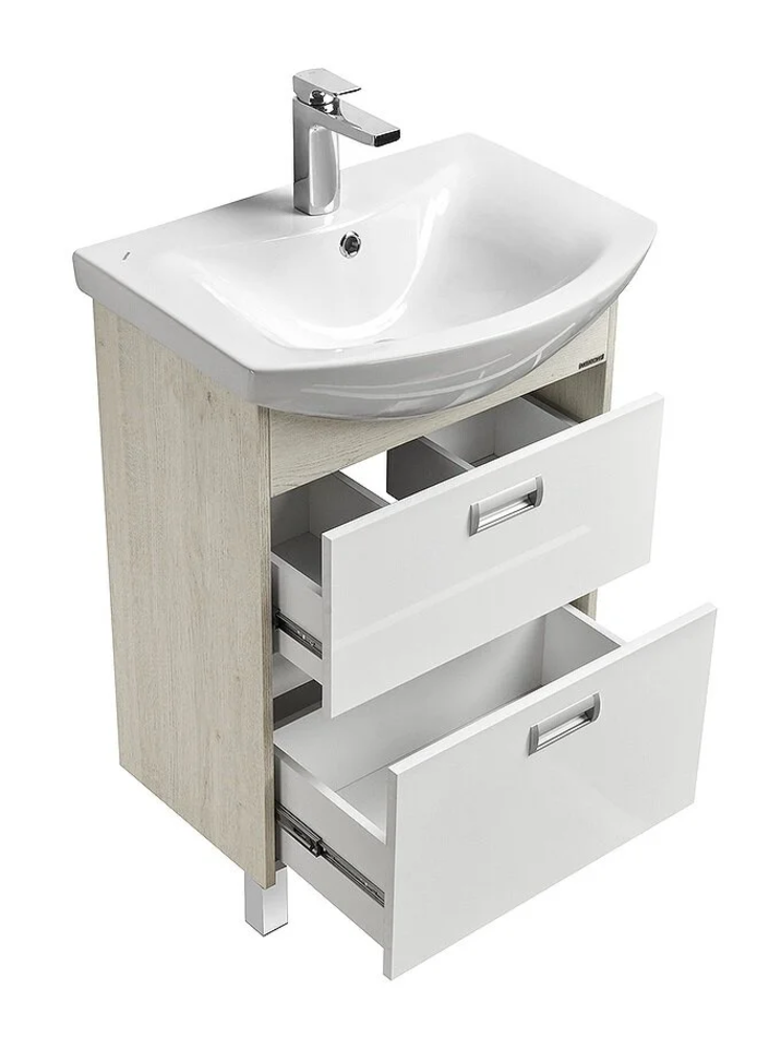 Тумба под раковину Размер: 54.8 x 31.5 x 86.5 см Ящики выдвижные: 2 Монтаж: напольный Материал: ЛДСП Покрытие: ламинат Форма: прямоугольная Цвет: дуб сомерсет
