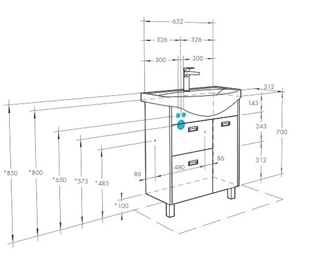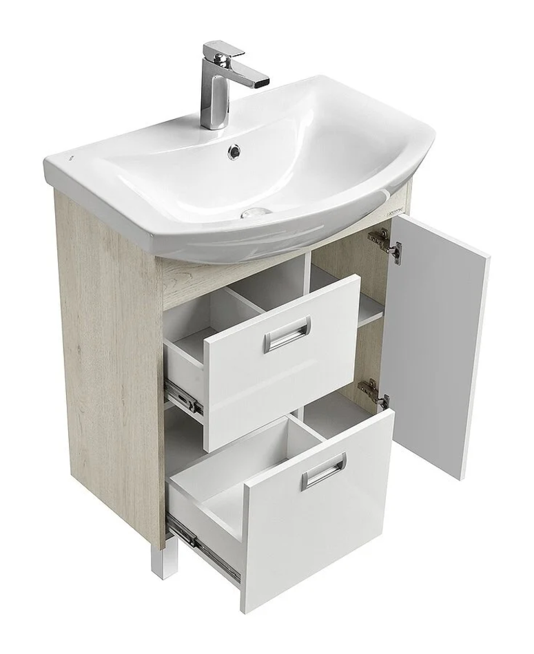 Тумба под раковину Акватон Бекка PRO 70 см напольная, белый, дуб сомерсет, 1A208701BAC20