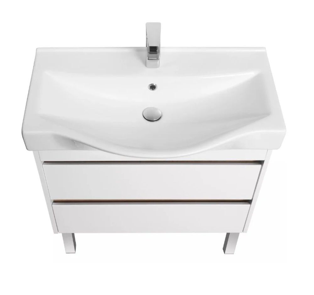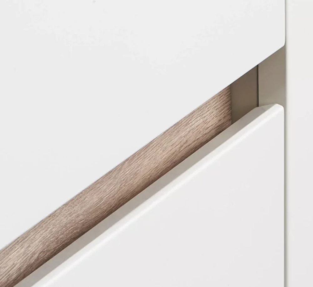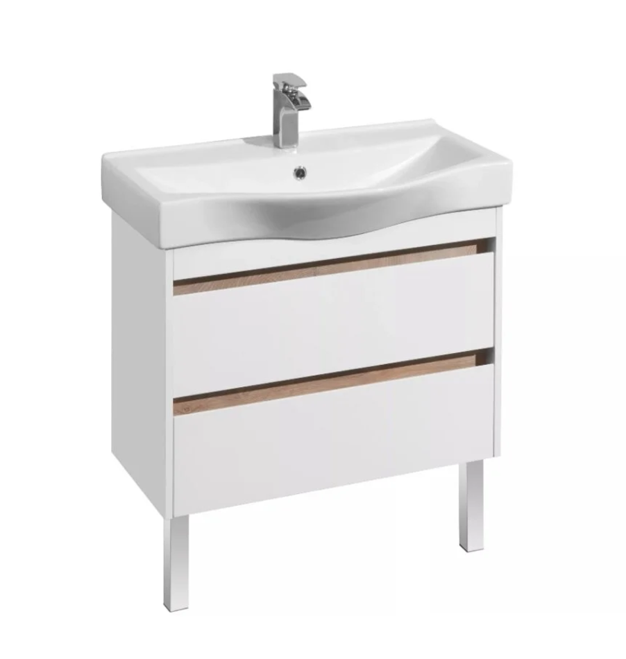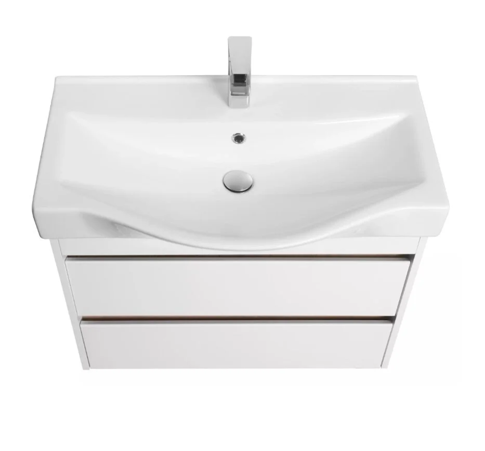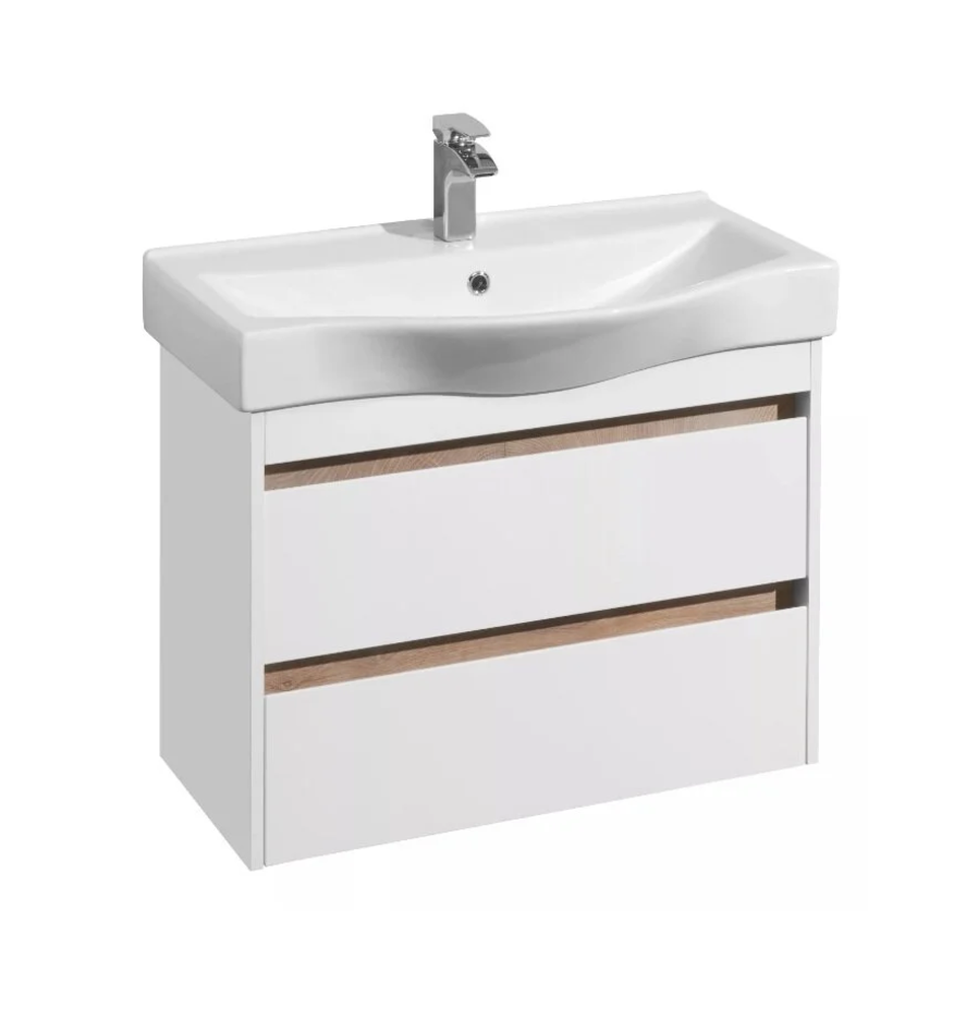 Тумба под раковину Размер: 76 x 35.7 x 55.4 см Монтаж: подвесной Ящики выдвижные: 2 С доводчиками Покрытие: краска Материал: ЛДСП, МДФ Форма: прямоугольная Цвет: белый глянцевый/дуб эндгрейн