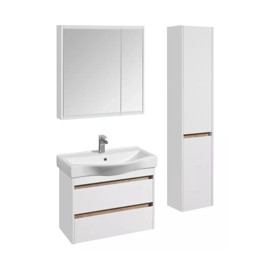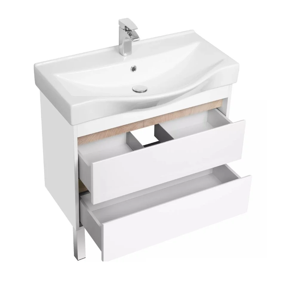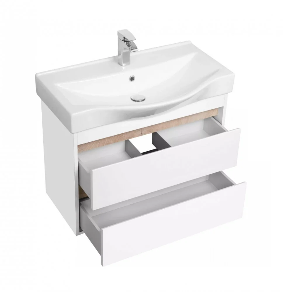 Тумба под раковину Акватон Нортон 80 см, 1A248901NT010, подвесная, белый глянцевый/дуб эндгрейн