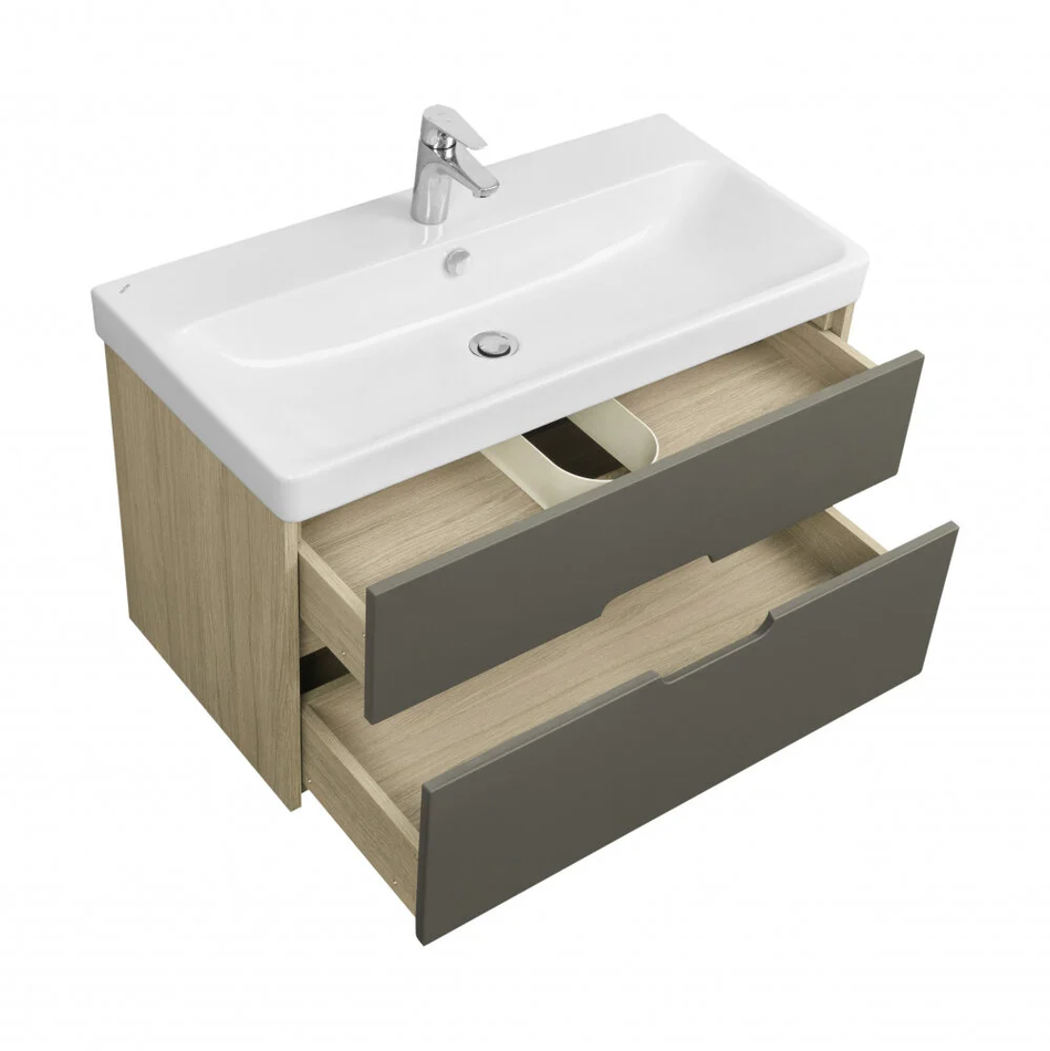 Тумба под раковину Акватон Оливия, 1A254401OLUG0, 90 см, подвесная, цвет грей/дуб ойстер