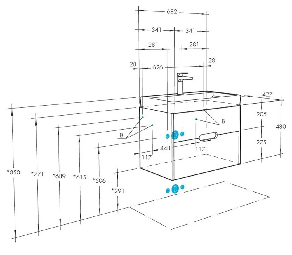 Тумба под раковину Акватон Оливия 70 см, бежевый, дуб велл, 1A254301OLVG0