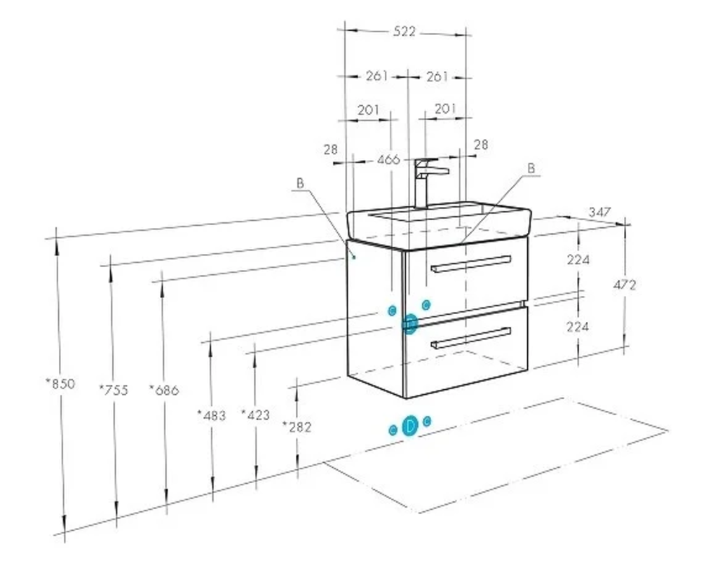 Тумба под раковину Акватон Ронда PRO 55 см подвесная, мини, дуб сомерсет, 1A207601RSC20