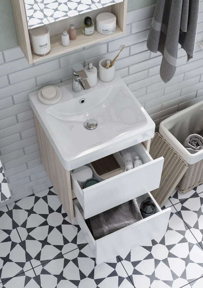 Тумба под раковину Акватон Сканди 45 см, 1A251601SDB20, подвесная, белый/дуб верона