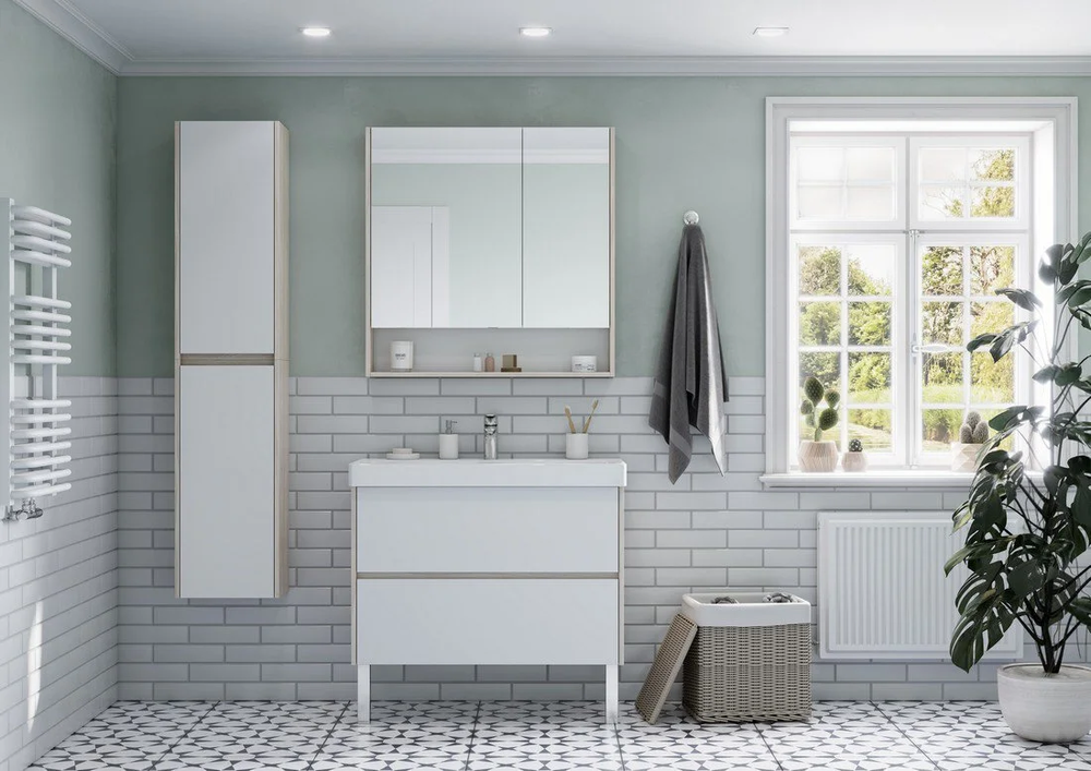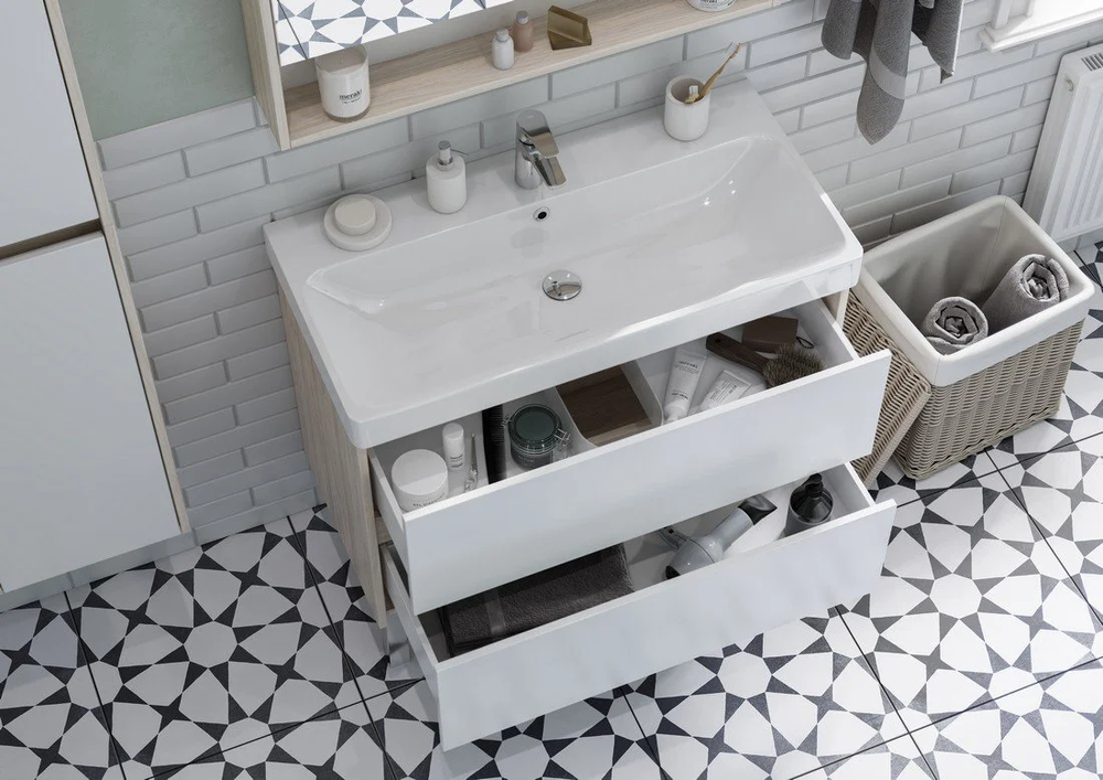 Тумба под раковину Акватон Сканди 90 см, 1A251901SDB20, подвесная, белый/дуб верона