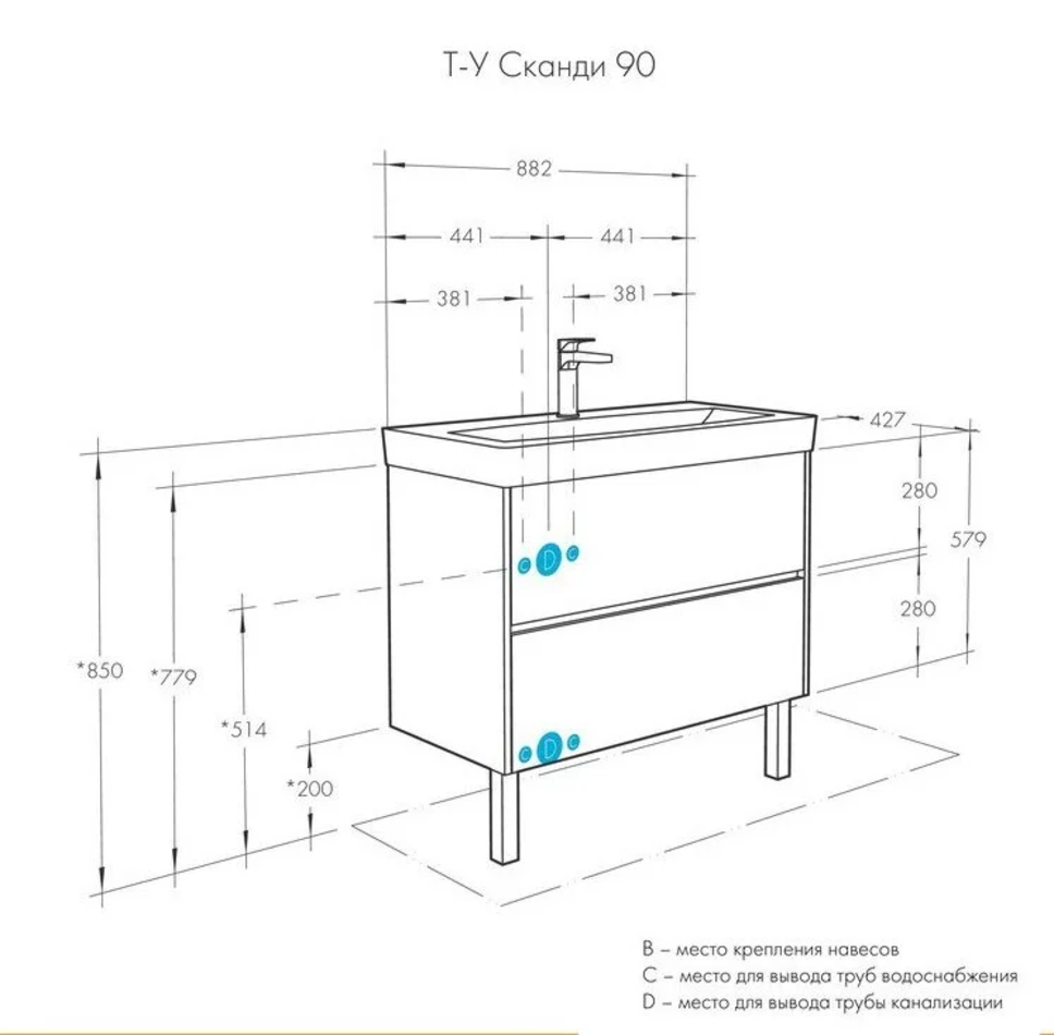 Тумба под раковину Акватон Сканди 90 см подвесная, белый, 1A251901SD010