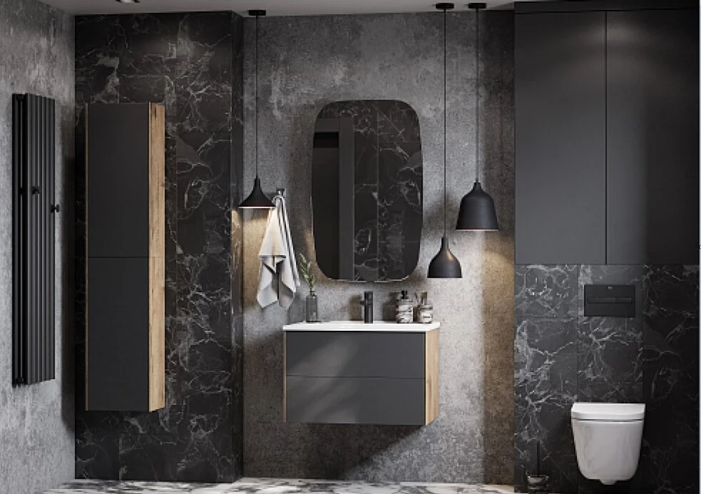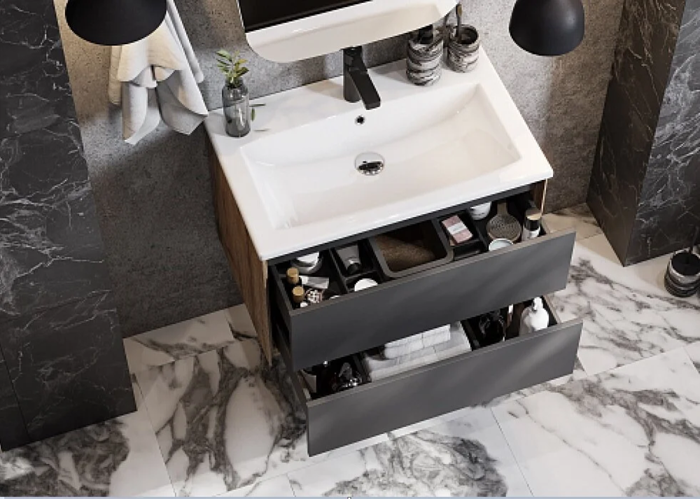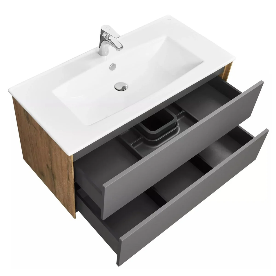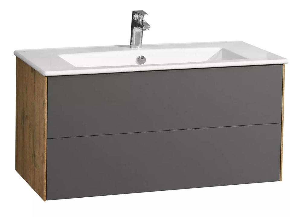 Тумба под раковину Акватон Сохо 100 см подвесная, дуб веллингтон/графит софт, 1A258201AJA00