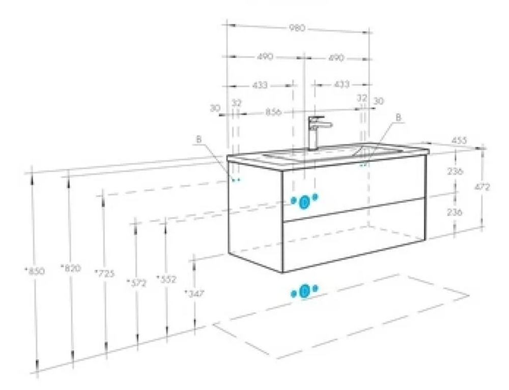 Размер без раковины: 98 x 45.5 x 47.6 см