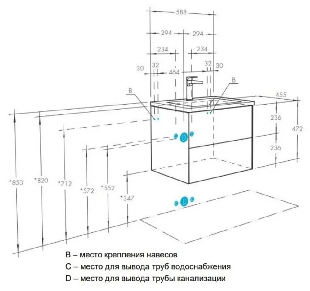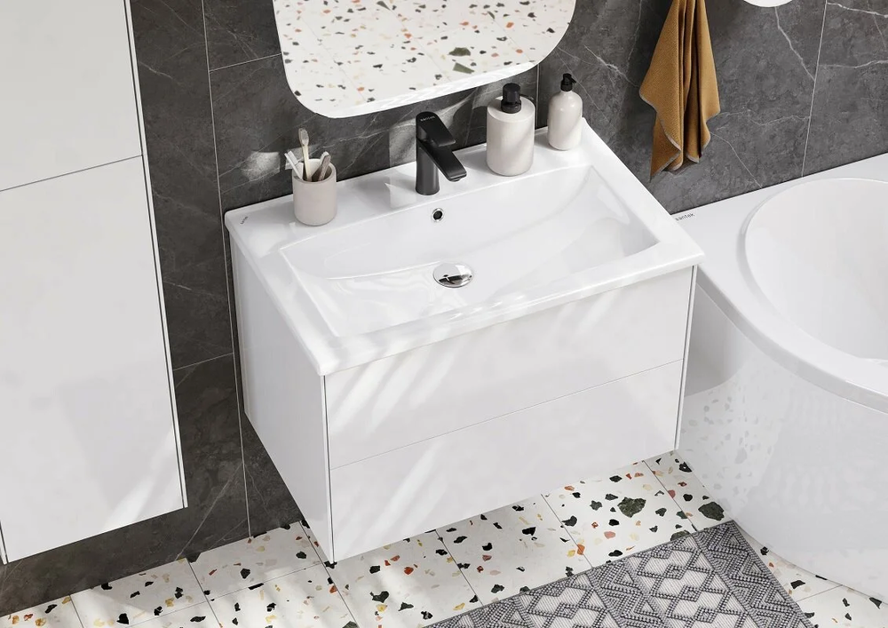 Тумба под раковину Акватон Сохо 60 см подвесная, белый глянцевый, 1A258001AJ010