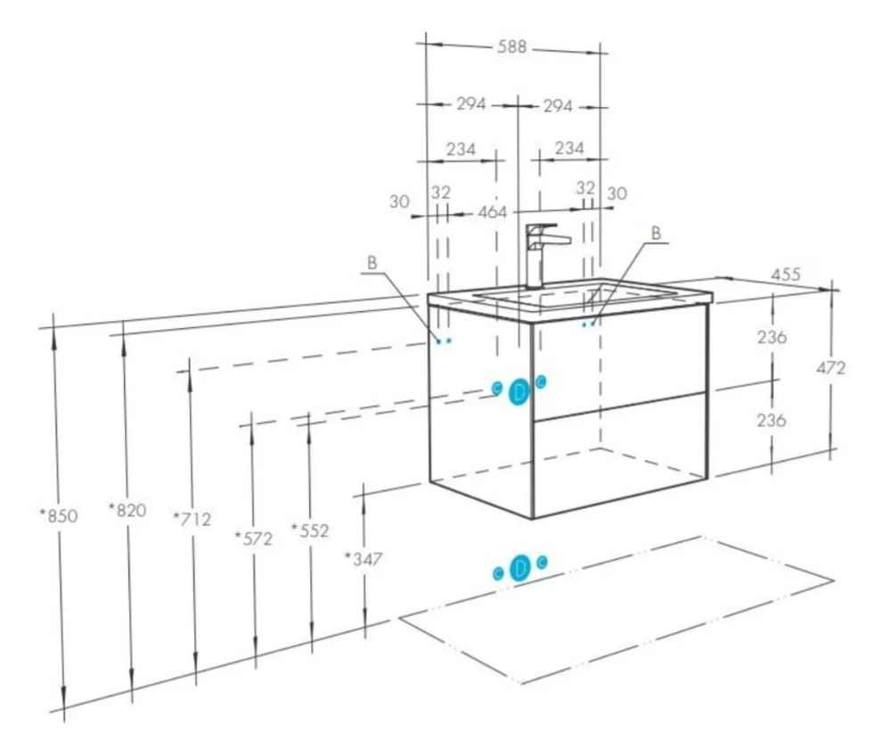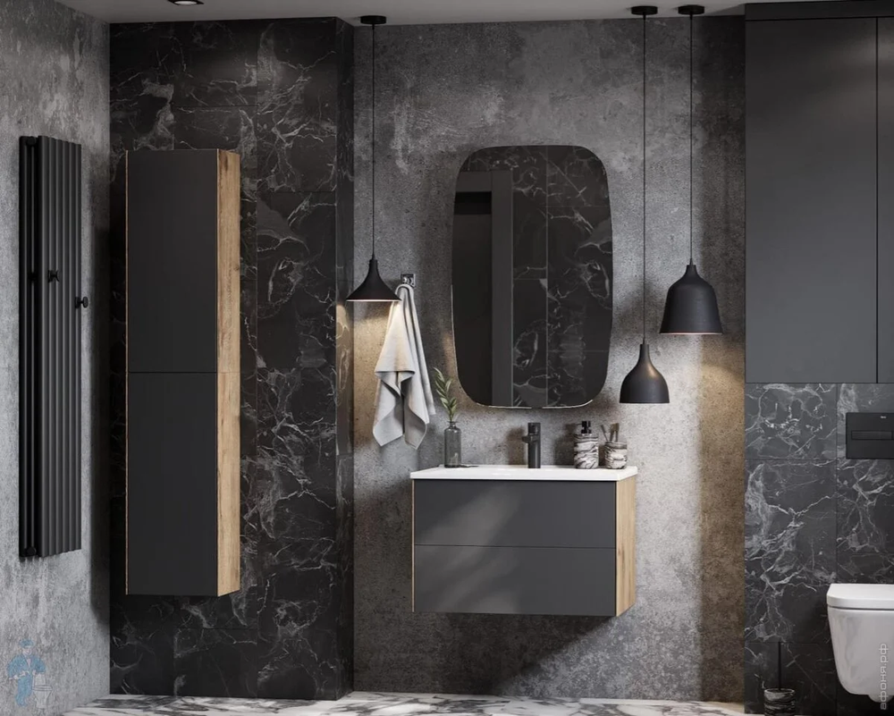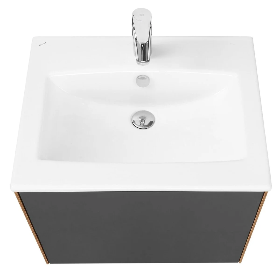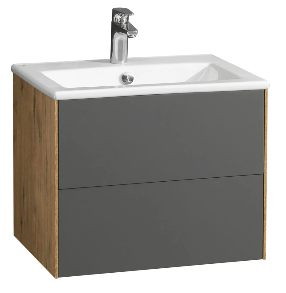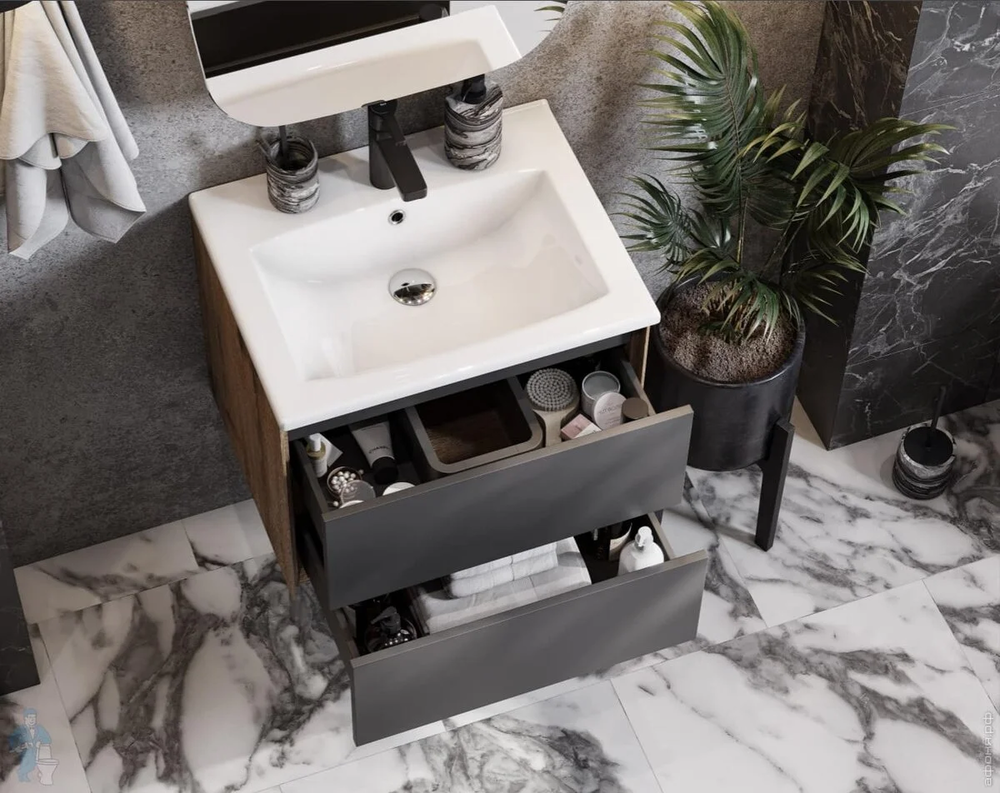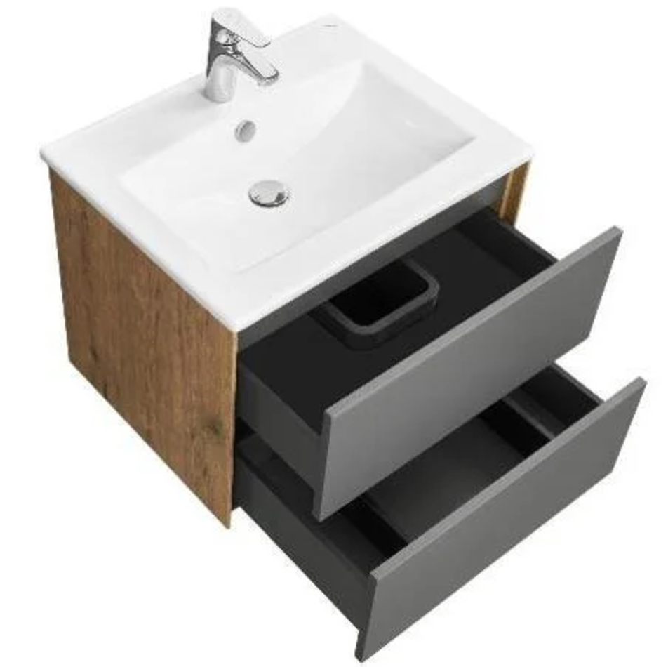 Тумба под раковину Акватон Сохо 60 см подвесная, дуб веллингтон/графит софт, 1A258001AJA00