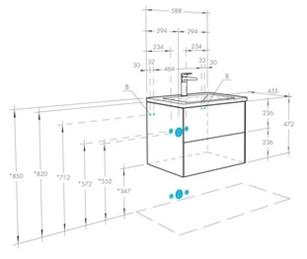 Размер без раковины: 58.8 x 45.5 x 48.2 см