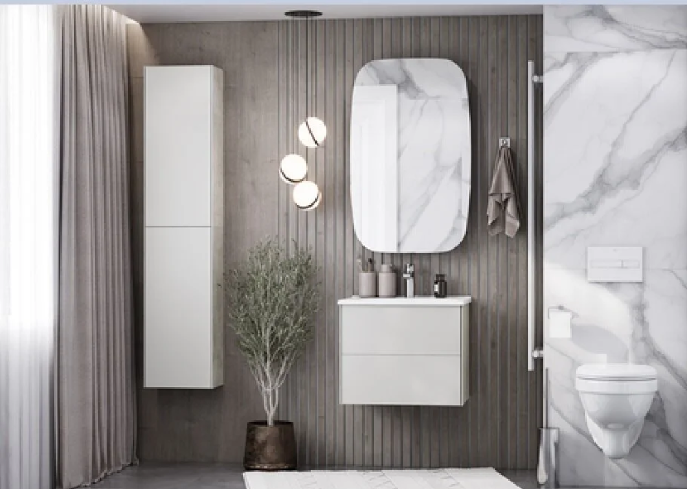 Тумба под раковину Акватон Сохо 60 см подвесная, слейт/галька серая, 1A258001AJ9A0