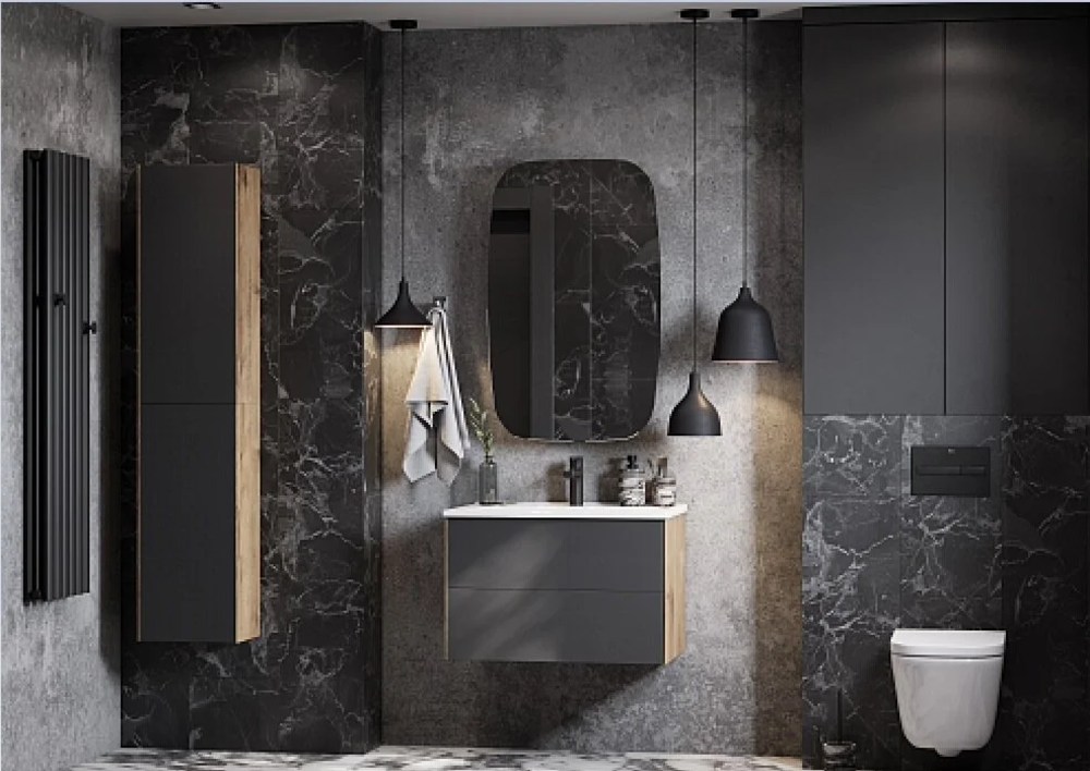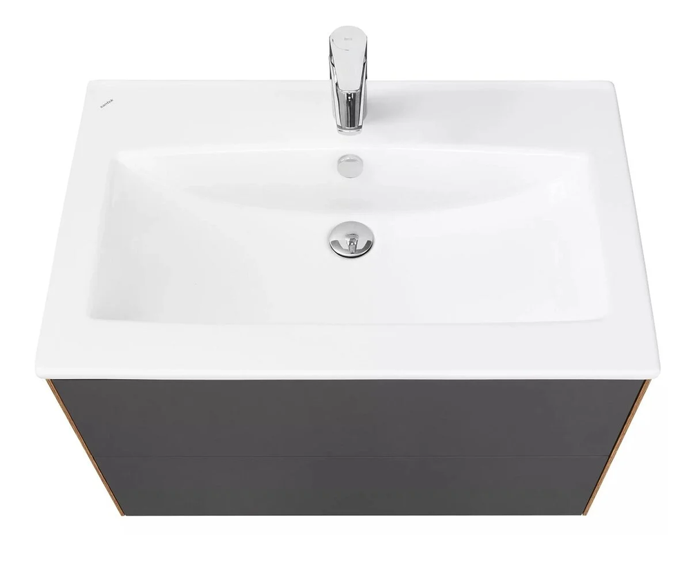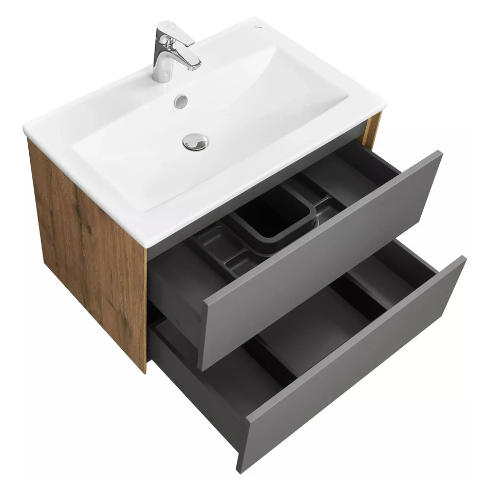 Тумба под раковину Акватон Сохо 75 см подвесная, дуб веллингтон/графит софт, 1A258101AJA00