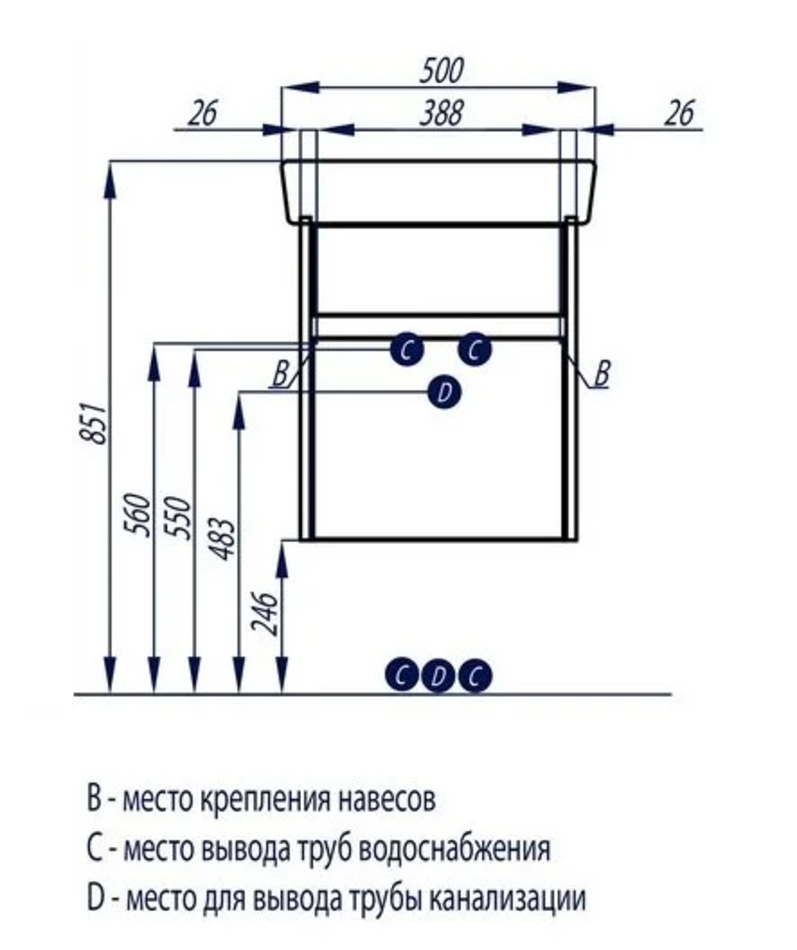 Размер с раковиной: 50 x 43 x 60.5 см