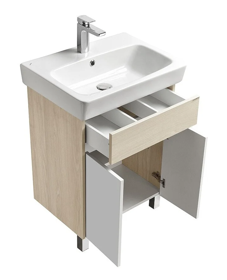 Тумба под раковину Акватон Верди PRO Н 60 см напольная, белый, ясень фабрик, 1A207701VDAV0