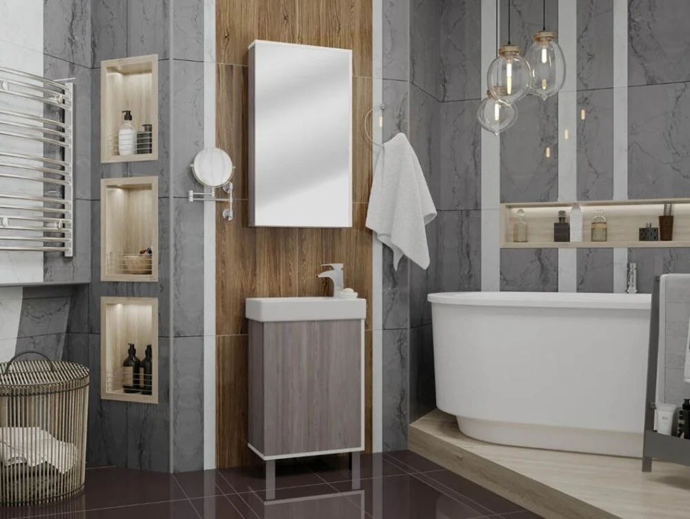 Компания «АКВАТОН» совершила настоящий прорыв в области производства мебели для ванных комнат, предложив российским покупателям удобную, компактную и в то же время элегантную и стильную мебель (тумбы-умывальники, навесные зеркальные шкафчики, полки с зеркалами) по ценам, на порядок отличающимся от импортных аналогов. Эти изящные модели для небольших санузлов станут настоящим украшением Вашего дома.Все фасады-створки установлены на петли с интегрированным механизмом плавного закрывания. Ручки и опоры имеют покрытие, стойкое к механическим повреждениям и воздействию влажной среды ванной комнаты. Все детали изготовлены из влагостойких материалов, прошли многоступенчатый контроль качества и предназначены для использования в ванной комнате.