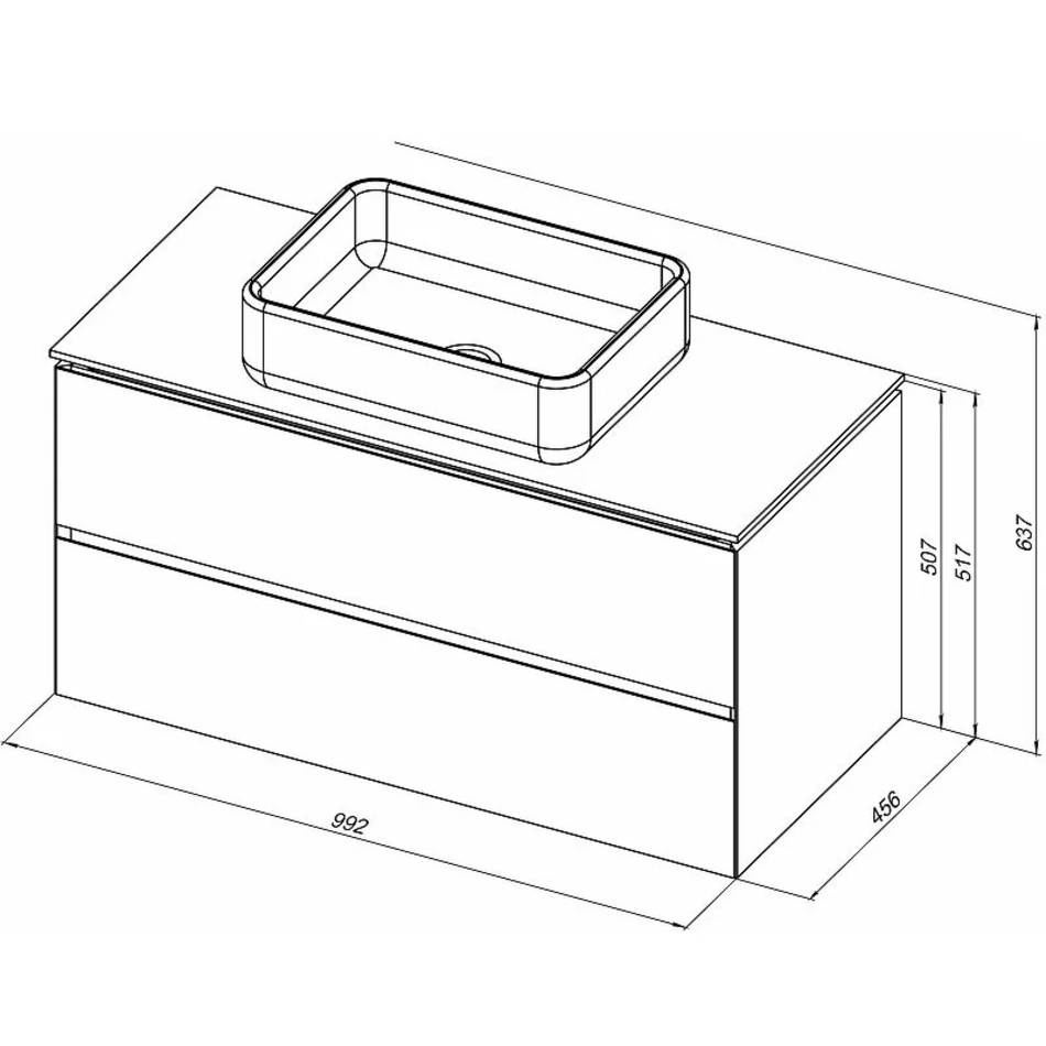 Габариты корпуса тумбы (ШхВхГ): 992х507х456 мм.