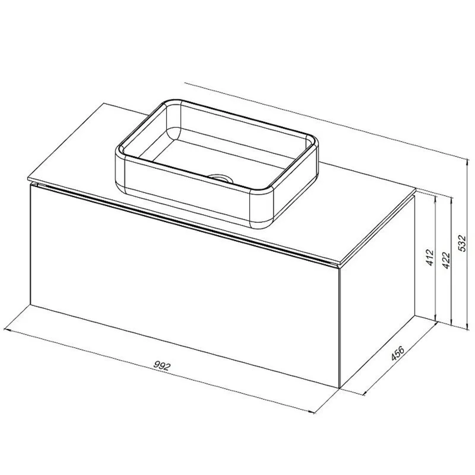 Габариты корпуса тумбы (ШхВхГ): 992х421х456 мм.