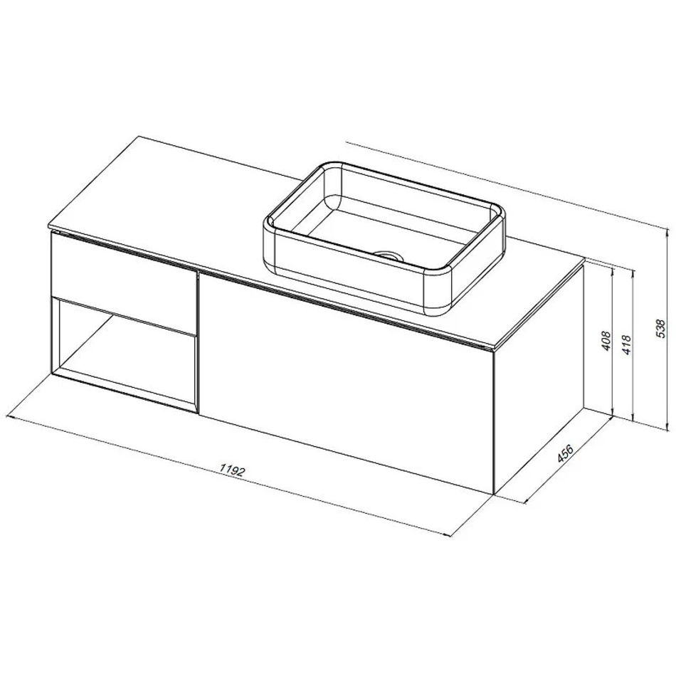 Габариты корпуса тумбы (ШхВхГ): 1192х408х456 мм.