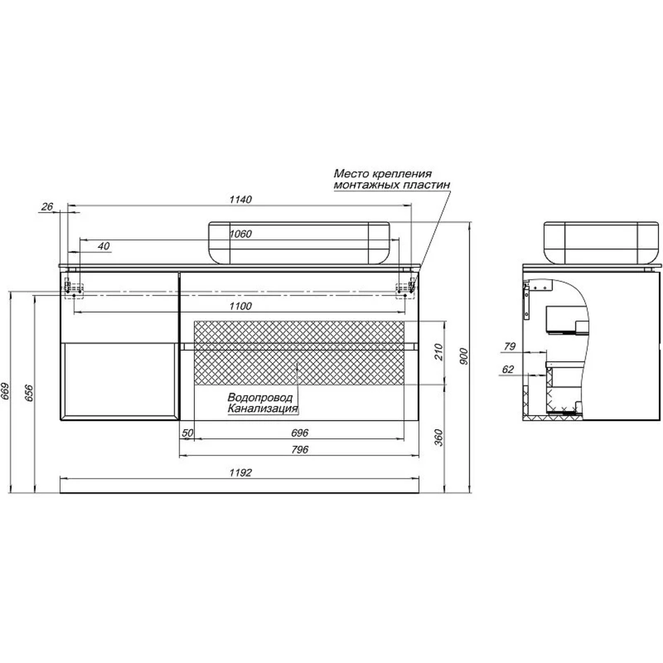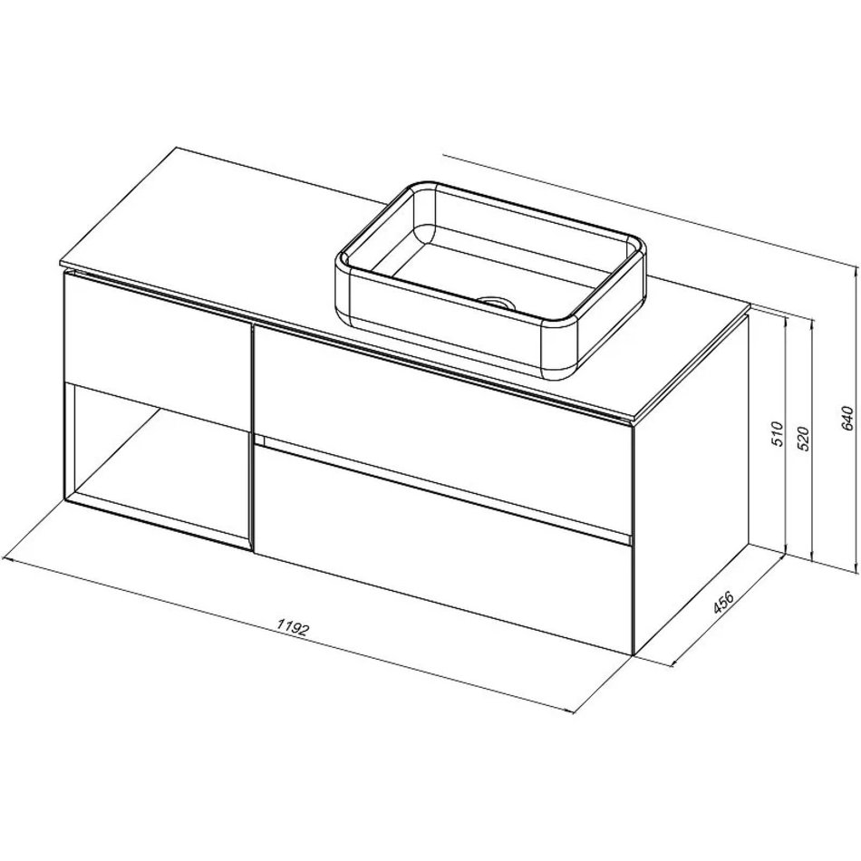 Габариты корпуса тумбы (ШхВхГ): 1192х510х456 мм.