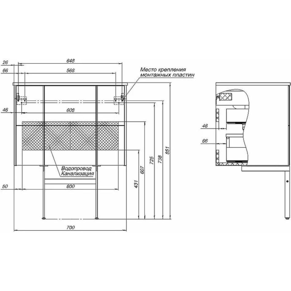 Габариты корпуса тумбы (ШхВхГ): 700х500х462 мм.