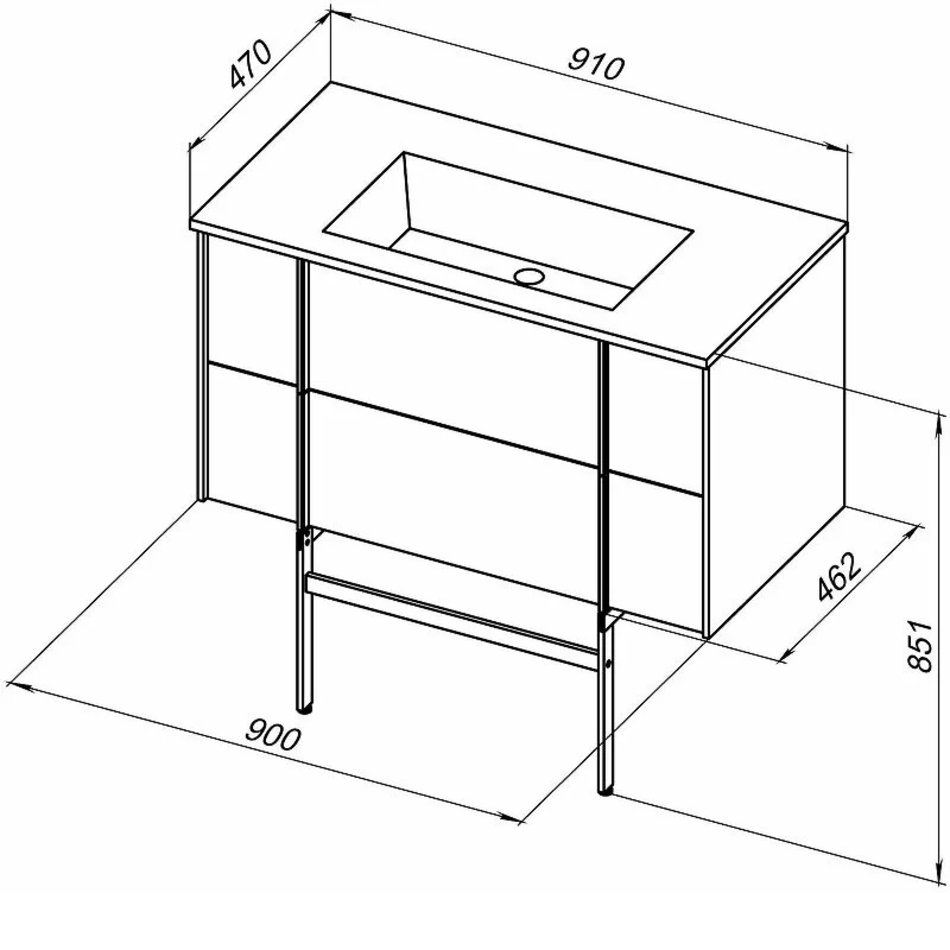 Габариты корпуса тумбы (ШхВхГ): 900х500х462 мм.