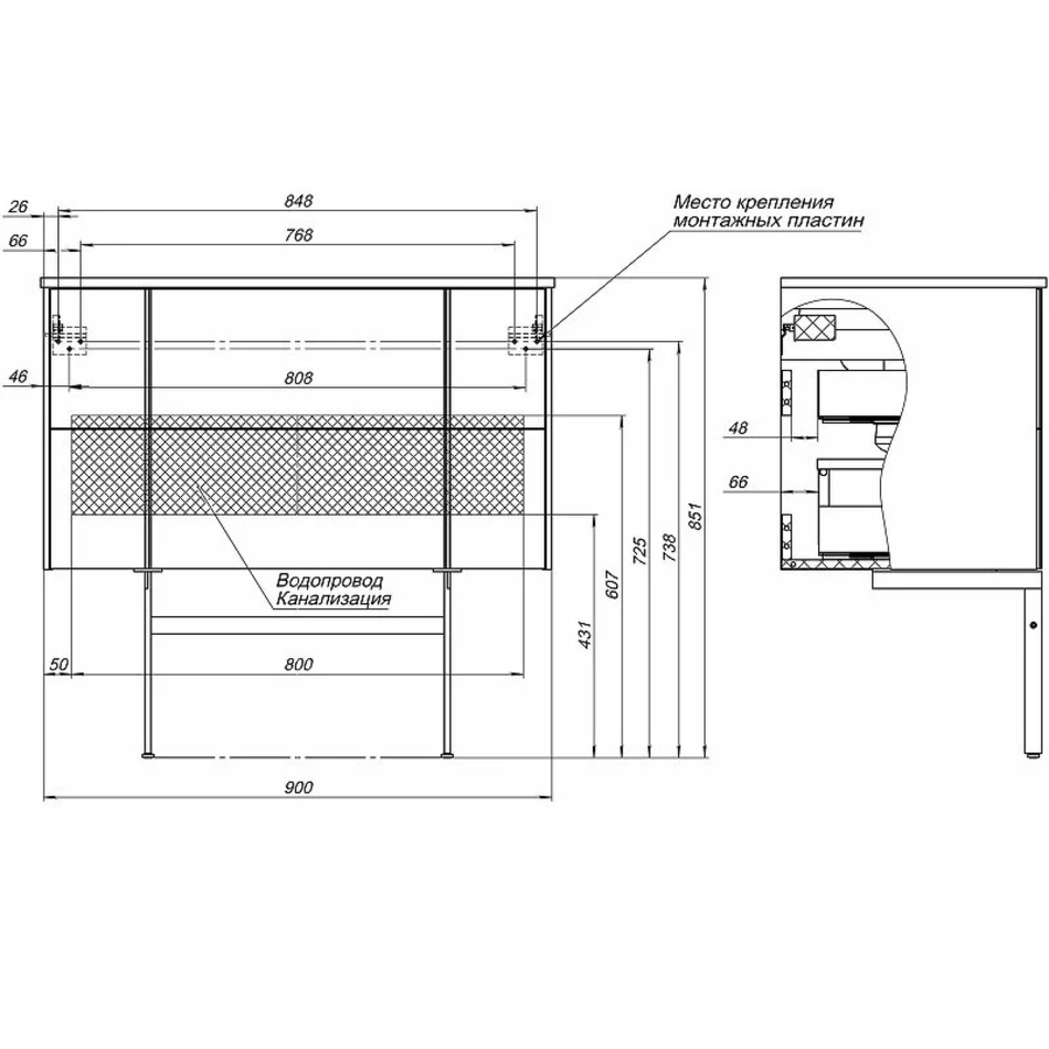 Габариты корпуса тумбы (ШхВхГ): 900х500х462 мм.