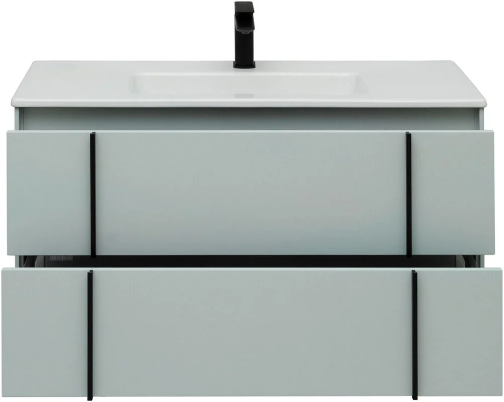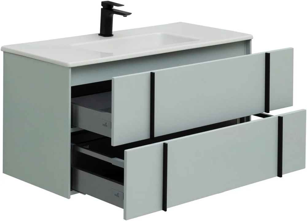 Тумбы оснащены специальной пластиковой рамой, которая надежно защищает вырез под сифон, служит органайзером и позволяет закрепить дополнительный набор контейнеров для хранени